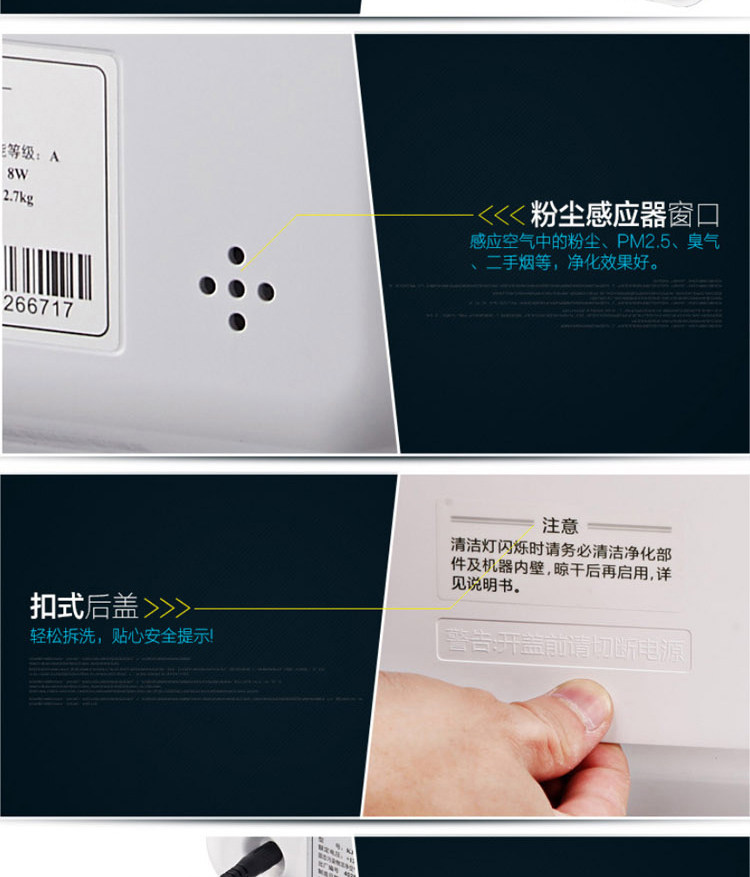 • 功能:定时 除花粉 除颗粒物 除甲醛 除烟除尘 除菌