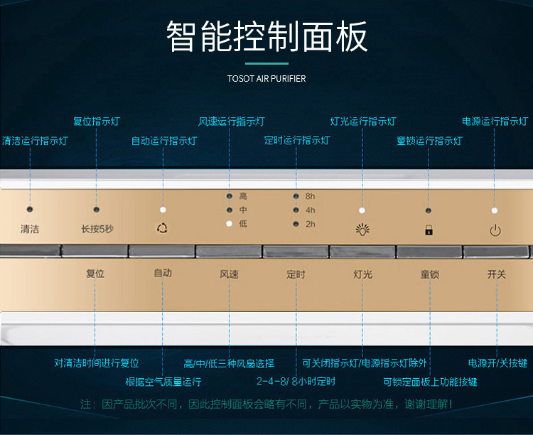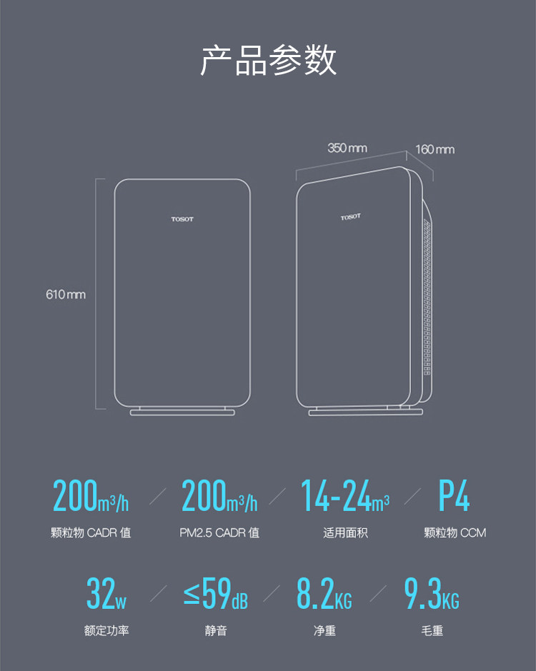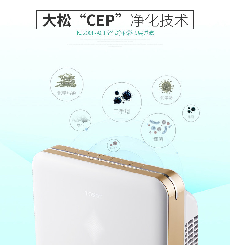 • 功能:定时 除花粉 除颗粒物 除烟除尘 杀菌