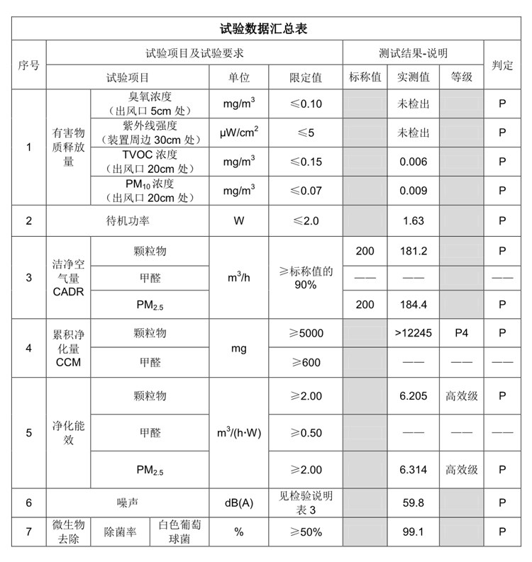 • 甲醛CADR值:200立方米/小时