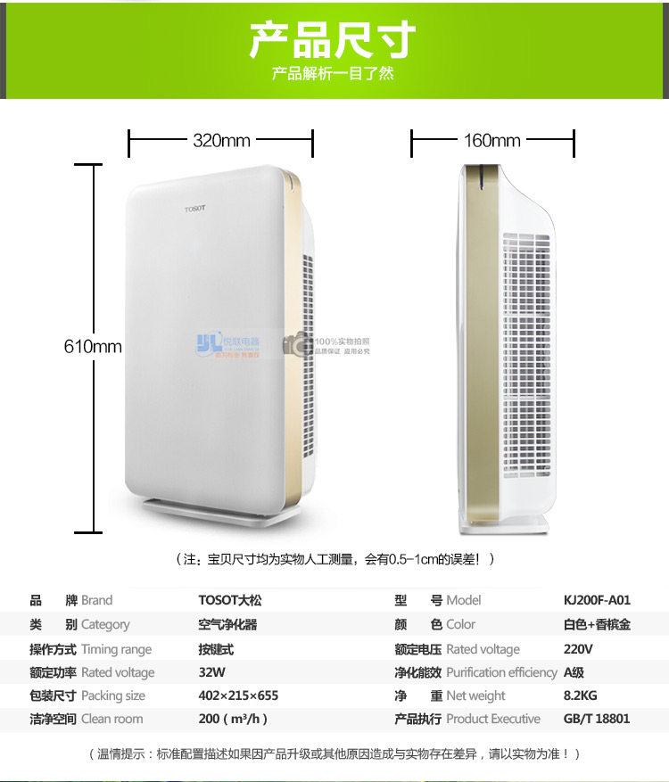 格力TOSOT/大松空气净化器家用终身0耗材除雾霾粉尘KJ200F-A01