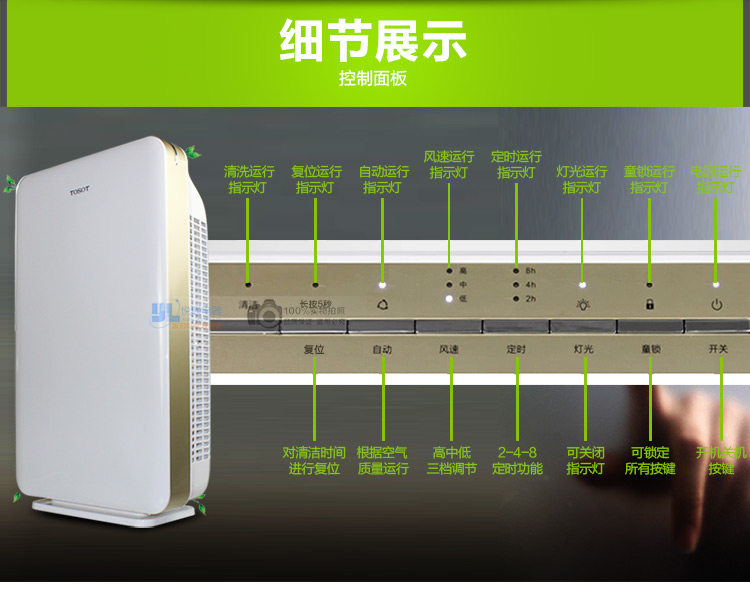 • 功能:定时 除花粉 除颗粒物 除烟除尘 杀菌