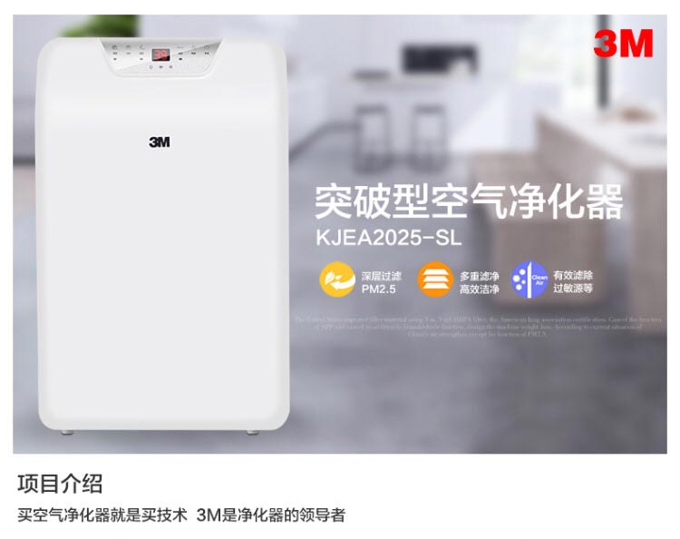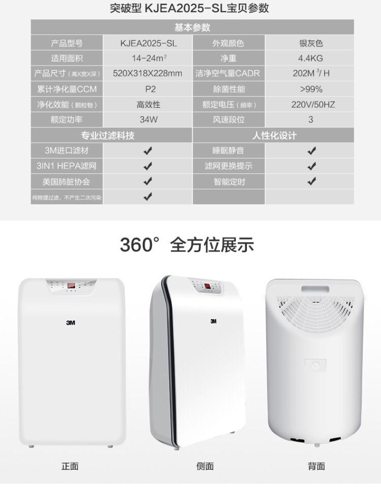 [蓝心水岸倡导绿色健康生活空气净化,氧吧]3M空气净化器KJ2025-SL家用月销量1件仅售885元