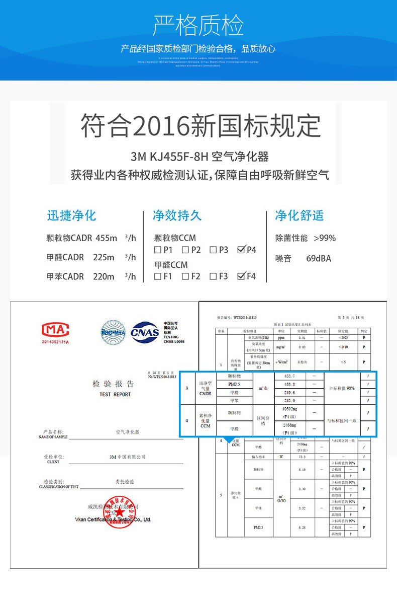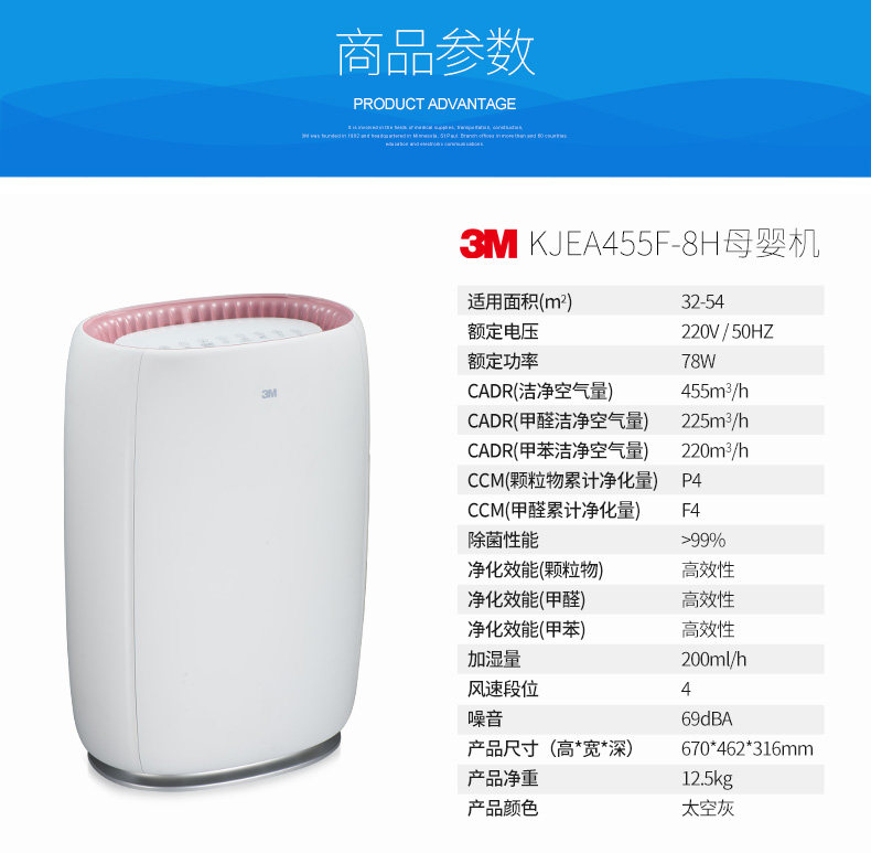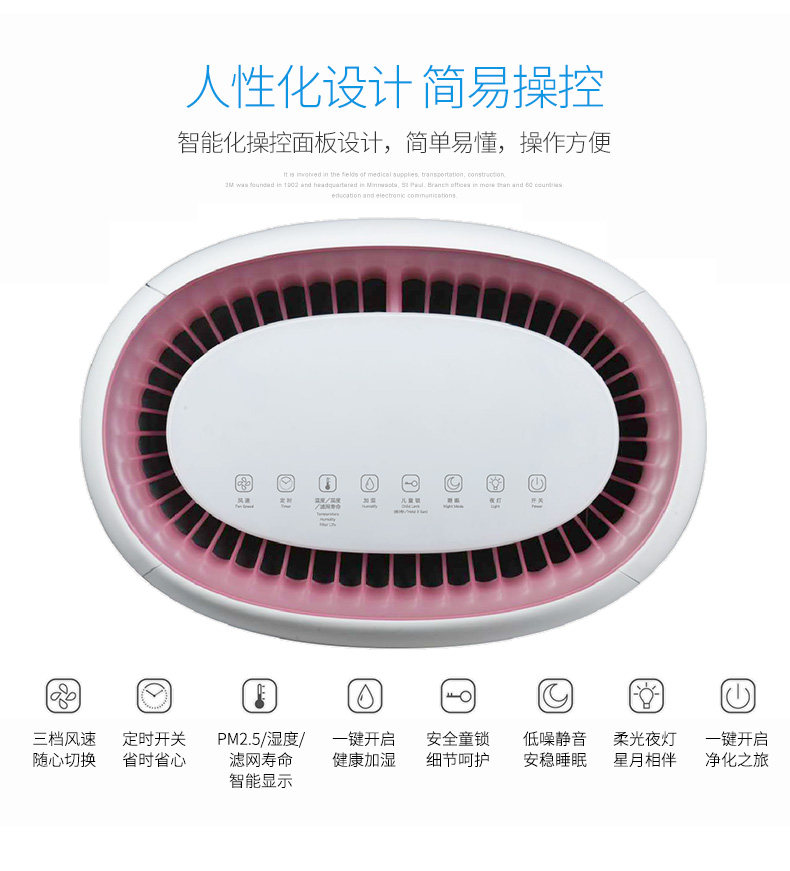 3M智能空气净化器家用除甲醛雾霾PM2.5办公室氧吧加湿KJ455F-8H