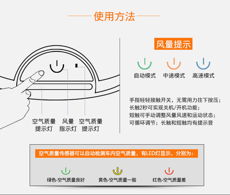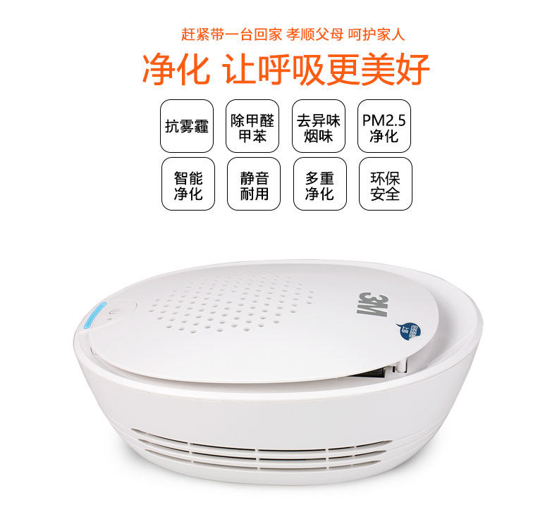 • 功能:消除异味过滤灰尘杀菌吸收TVOC气体