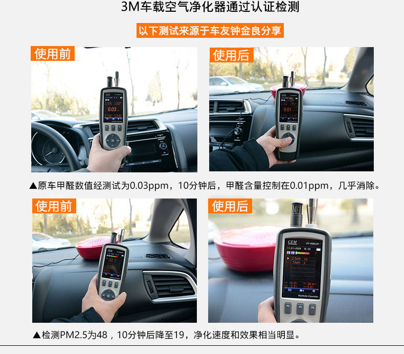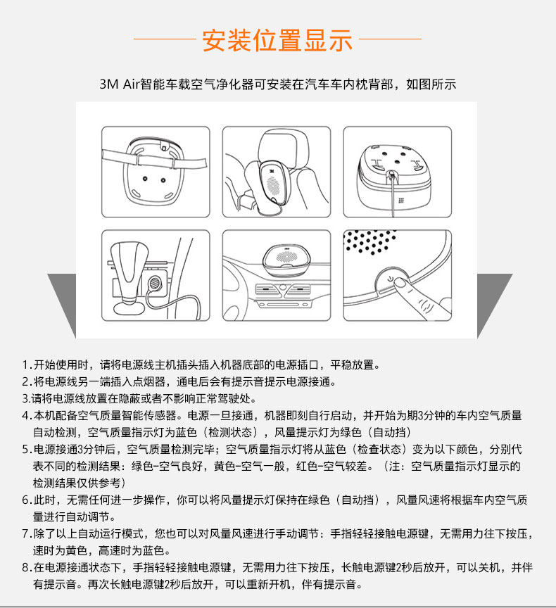 3M车载空气净化器氧吧车用除甲醛异味PM2.5汽车负离子空气净化器