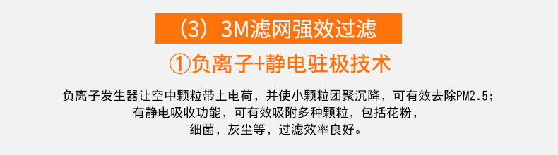 • 净化原理:HEPA滤网活性炭负离子静电吸附