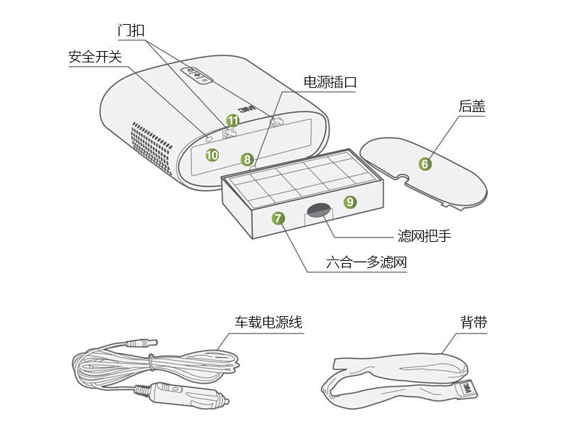 • 功能:过滤灰尘