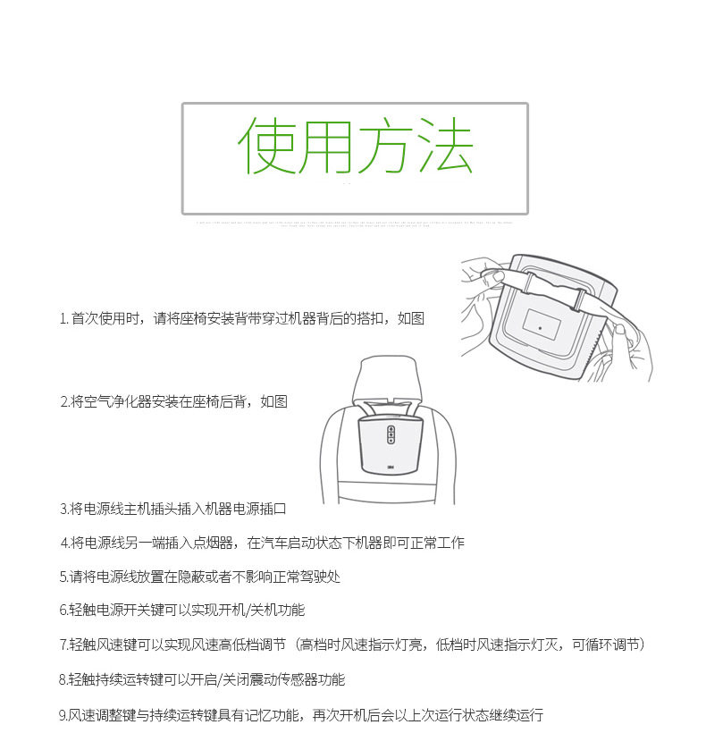 • 电源方式:点烟器电源