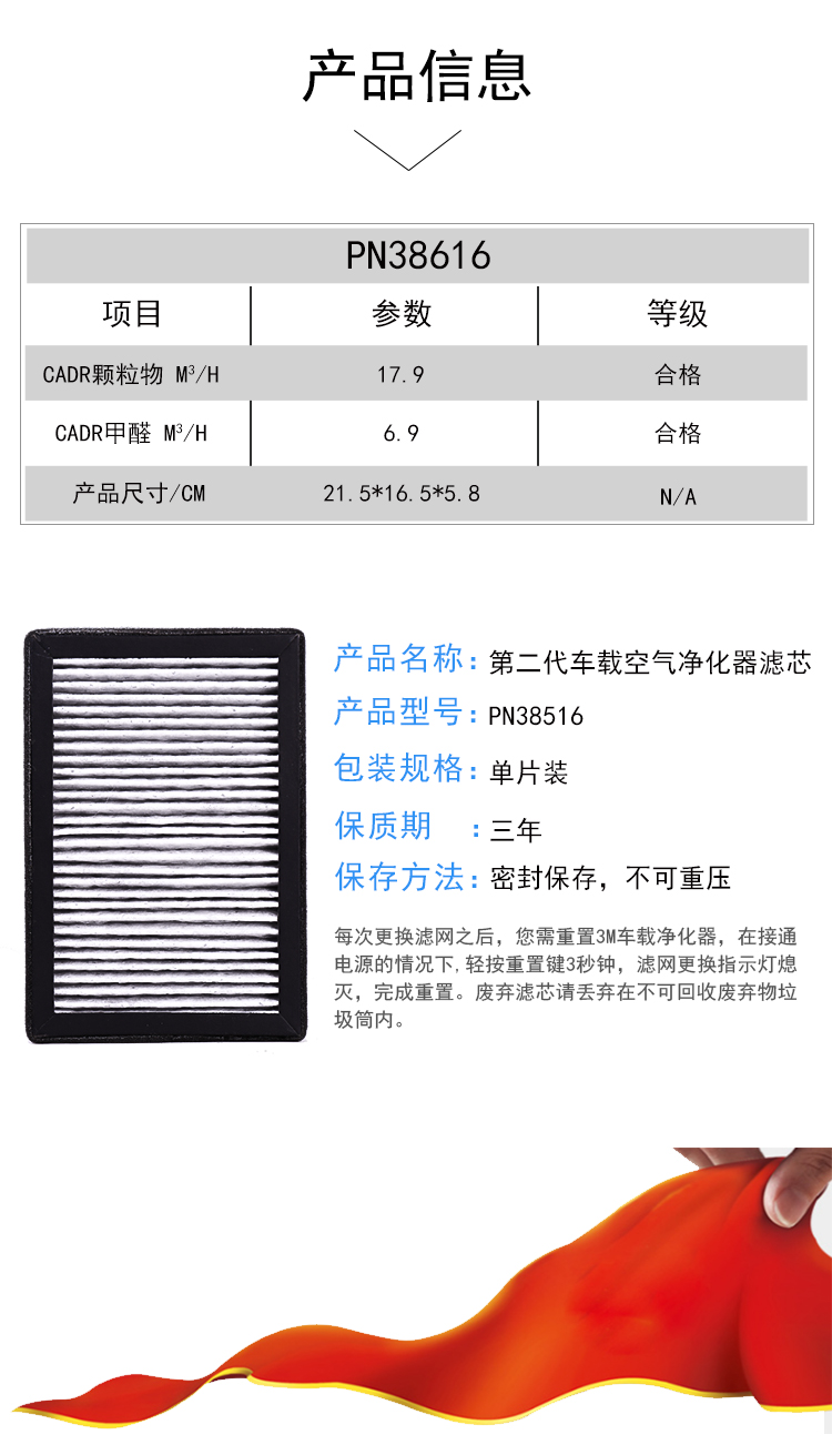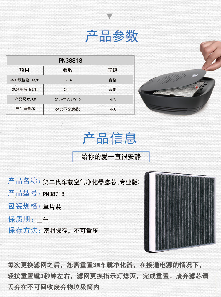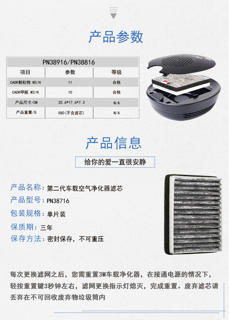 3M车载空气净化器滤芯用于38818 38808 38816 38916 38616净化器