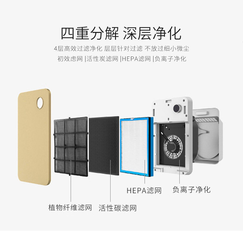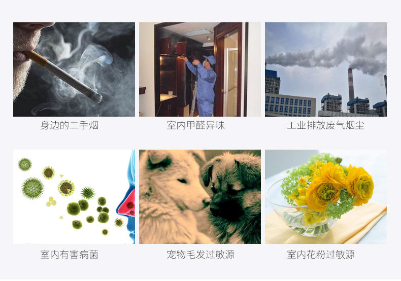 • 功能:除花粉除颗粒物除甲醛除烟除尘除雾霾除菌