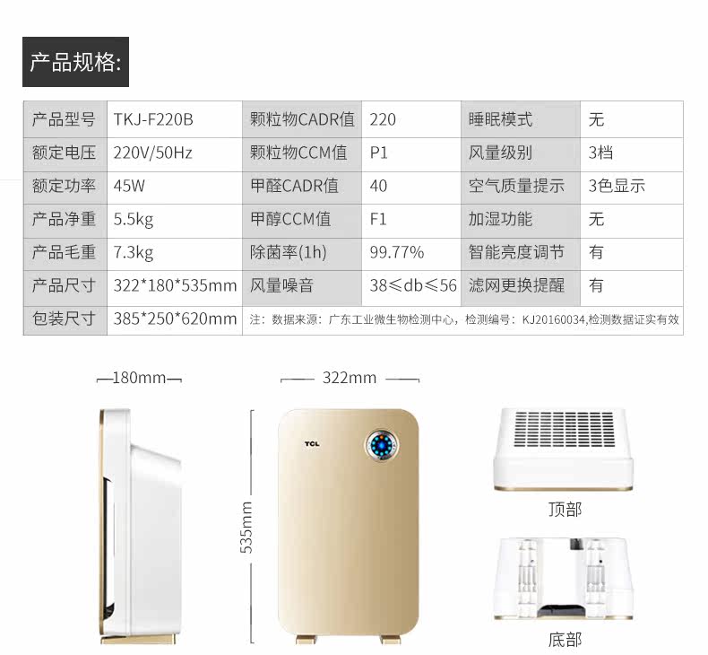 [美之澳电器专营店空气净化,氧吧]TCL TKJ-F220B 空气净化月销量0件仅售699元