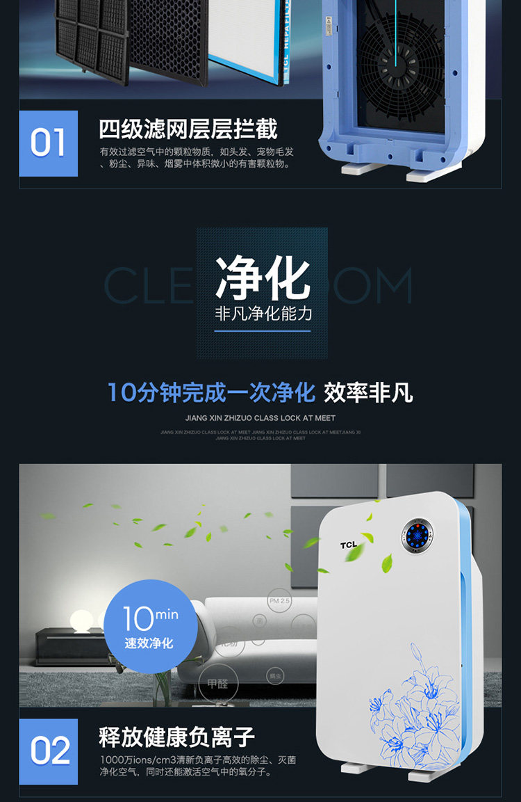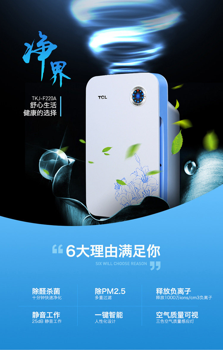TCL空气净化器 家用除甲醛 卧室去二手烟味雾霾负离子室内除粉尘