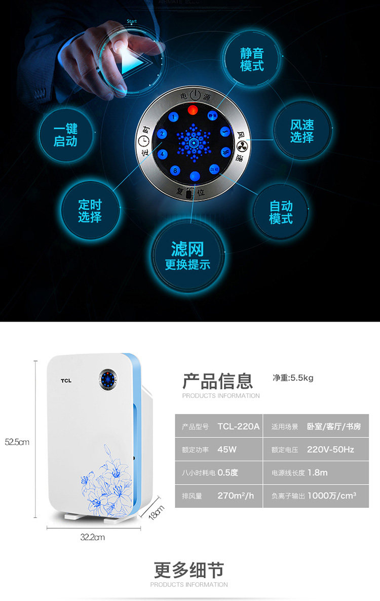• 功能:除甲醛 除烟除尘 杀菌 加氧