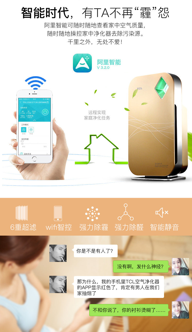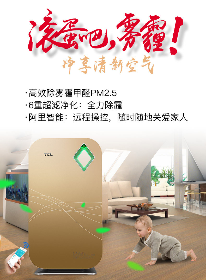 TCL智能甲醛空气净化器家用 除甲醛净化器二手烟尘PM2.5空气净化