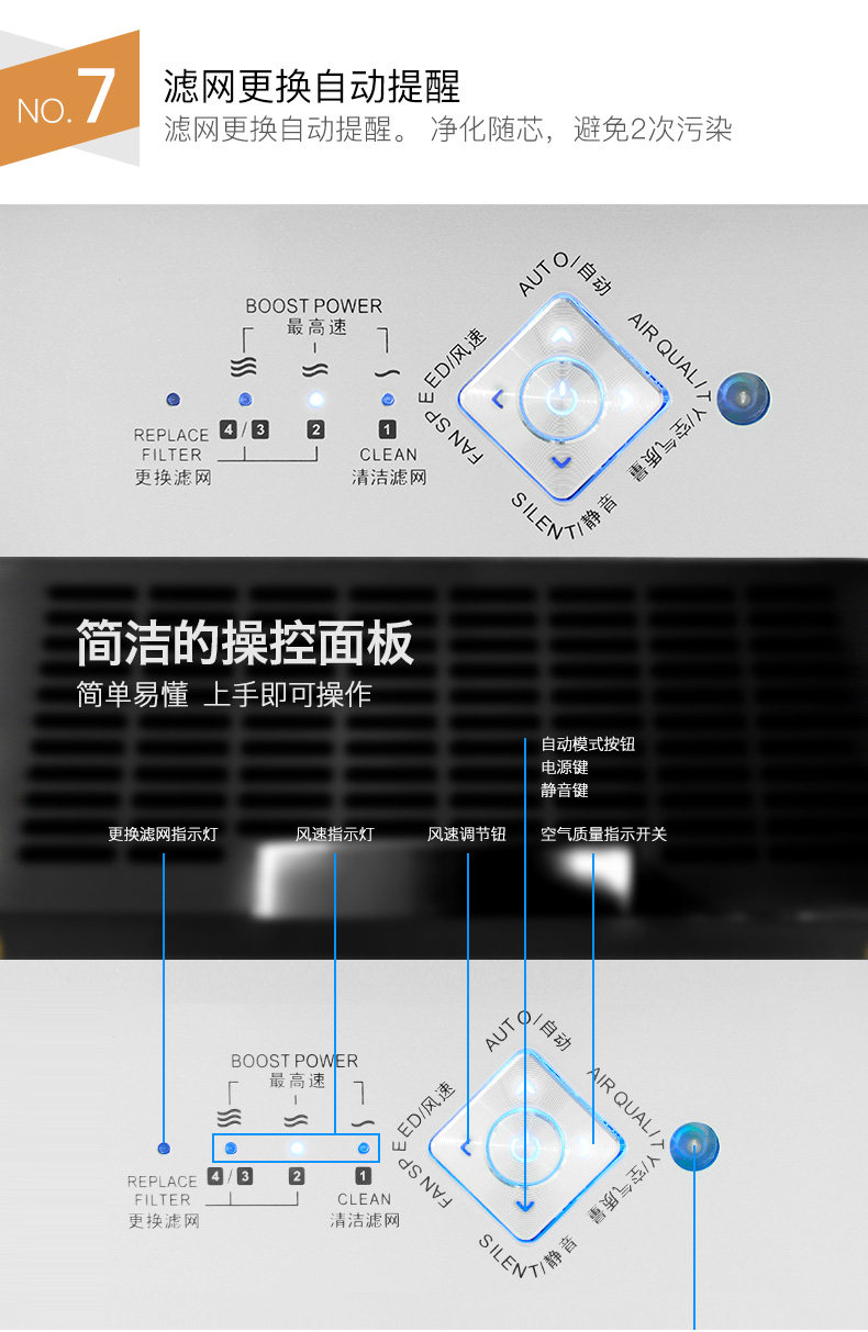 • 功能:定时 除花粉 除甲醛 除烟除尘 杀菌 加氧
