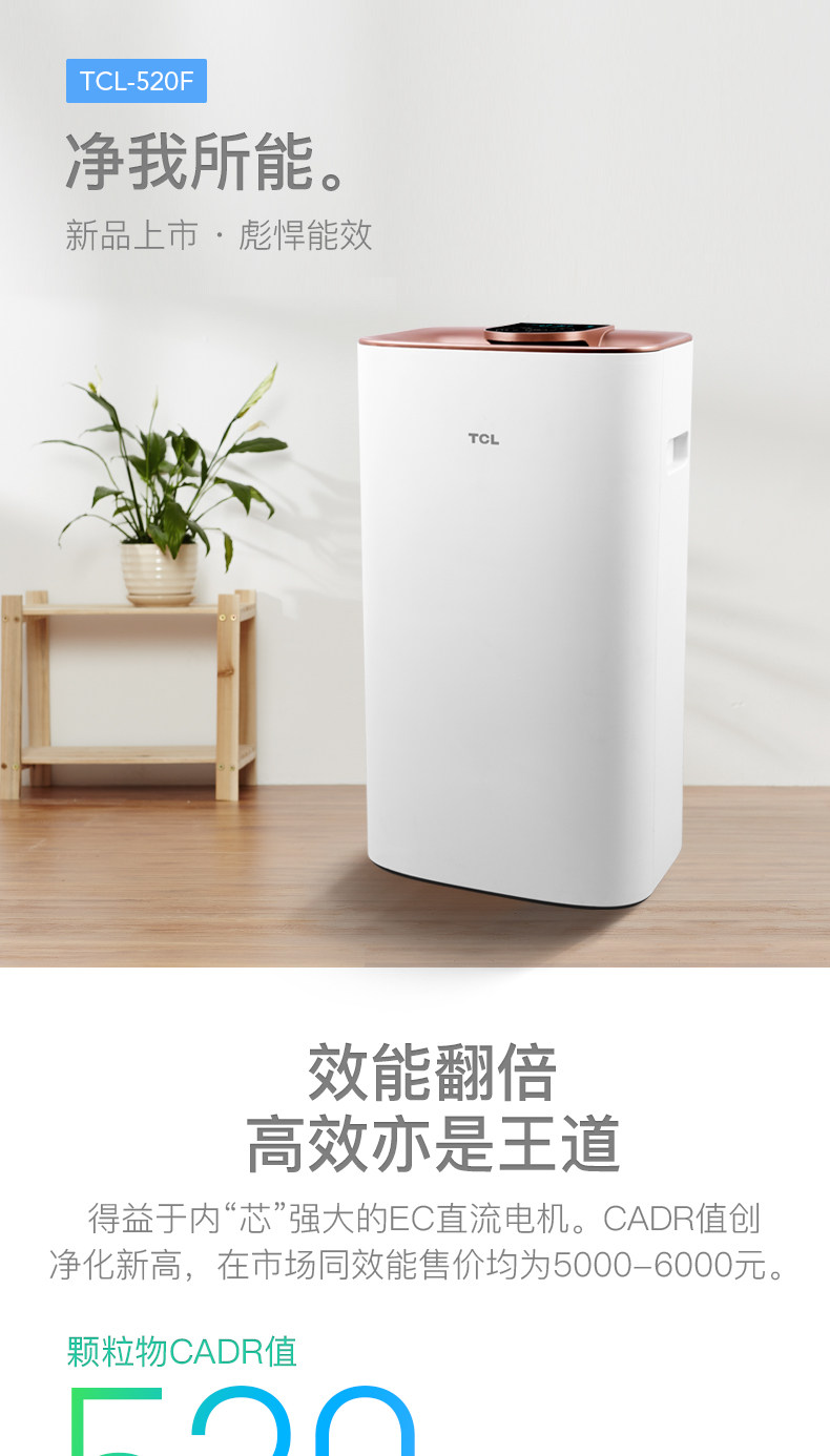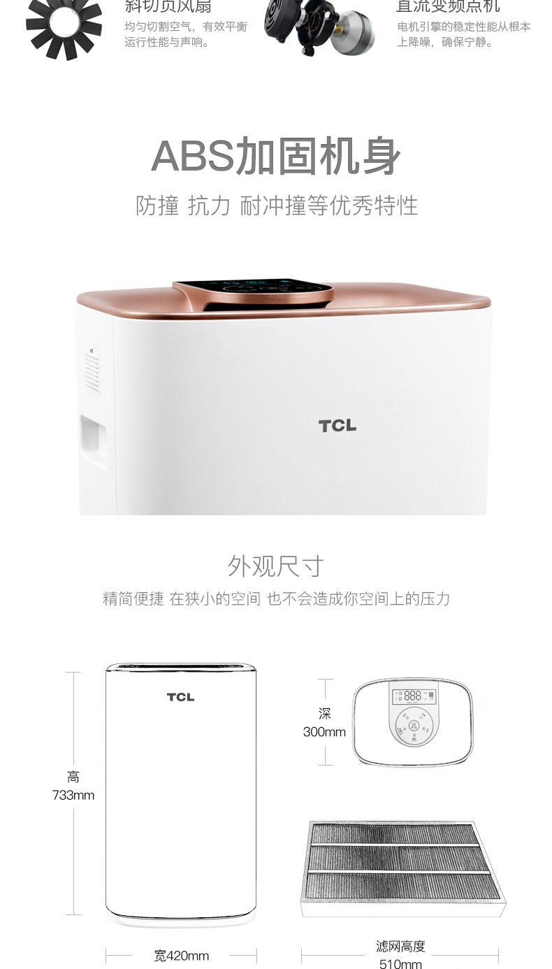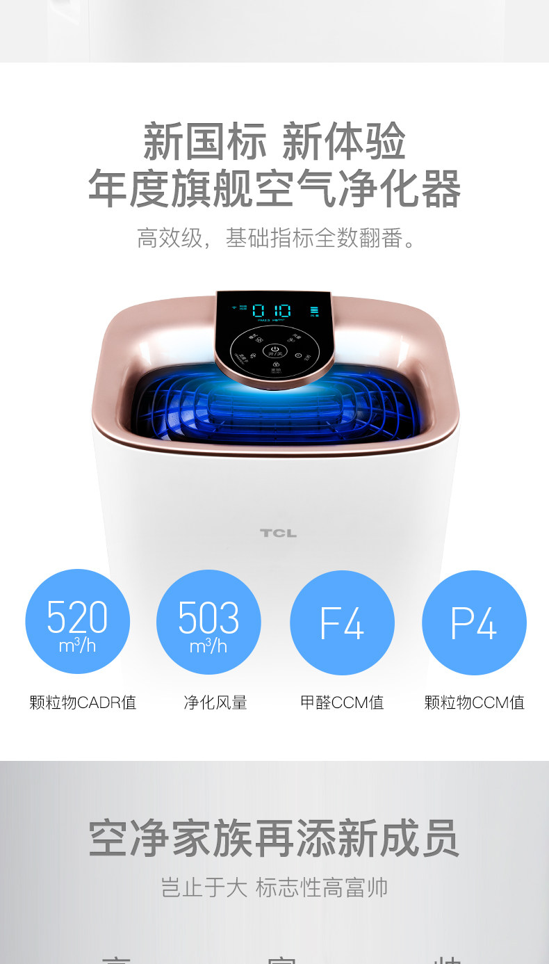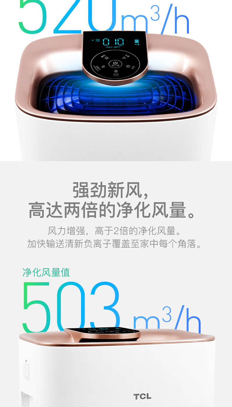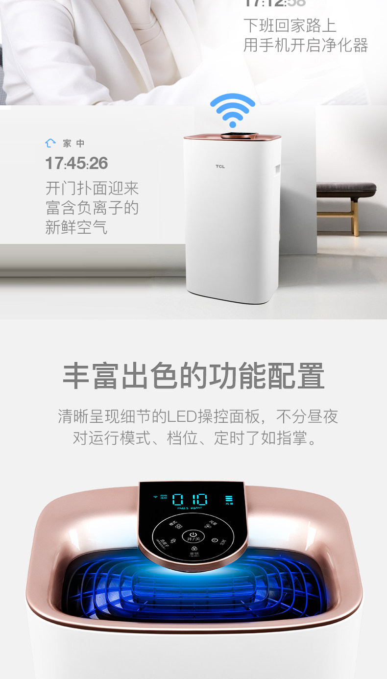TCL空气净化器家用卧室除甲醛雾霾PM2.5二手烟负离子静音氧吧智能