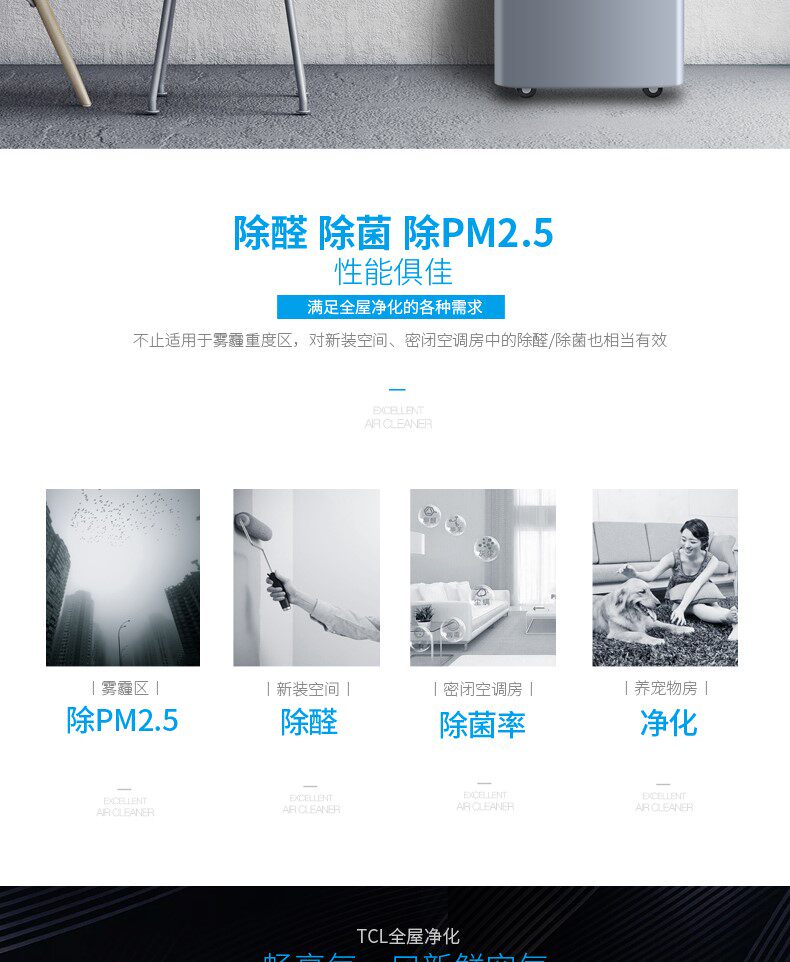 [聚美电器城空气净化,氧吧]TCL空气净化器家用除甲醛除霾杀菌除月销量1件仅售1699元