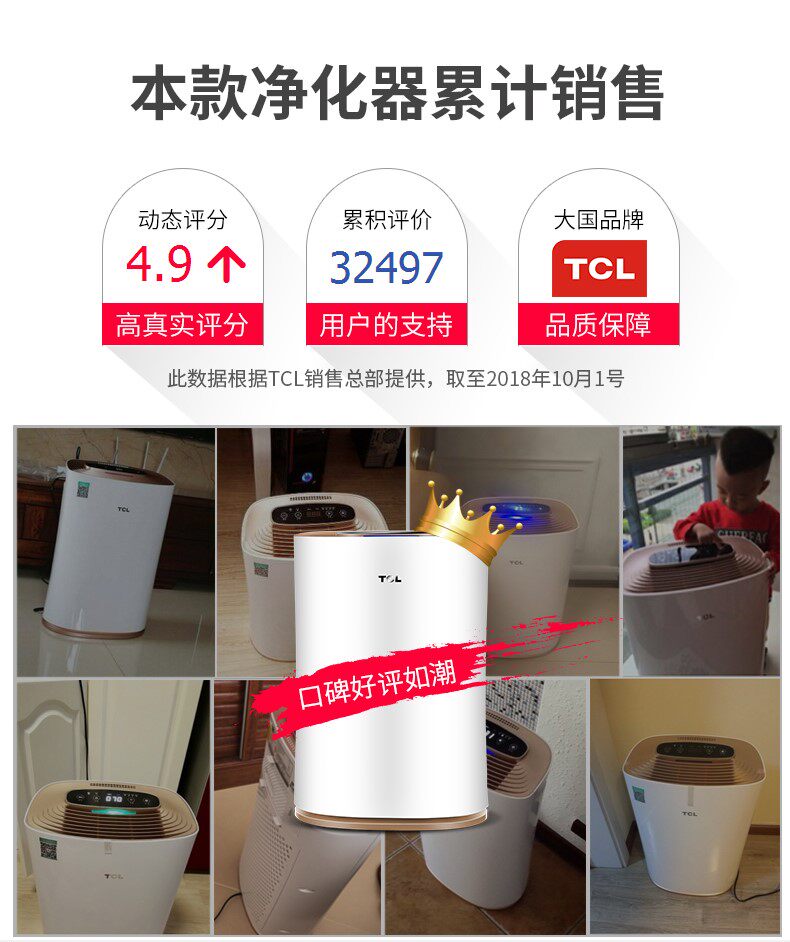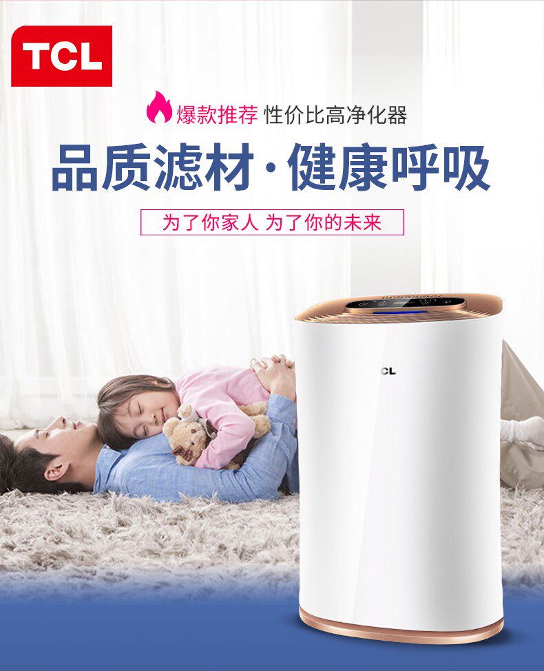 [聚美电器城空气净化,氧吧]TCL空气净化器家用卧室室内负离子除月销量7件仅售769元