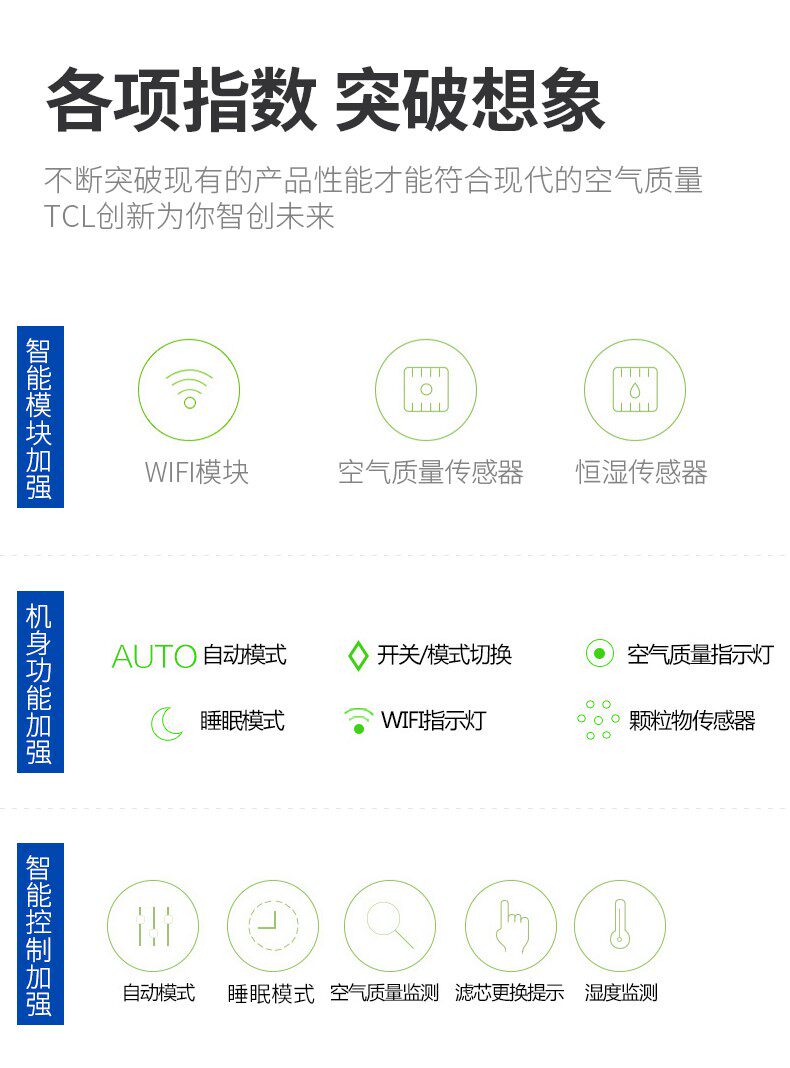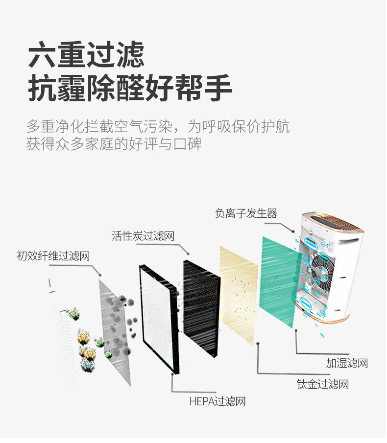 • 功能:定时 除花粉 除甲醛 除烟除尘 杀菌 加湿 加氧