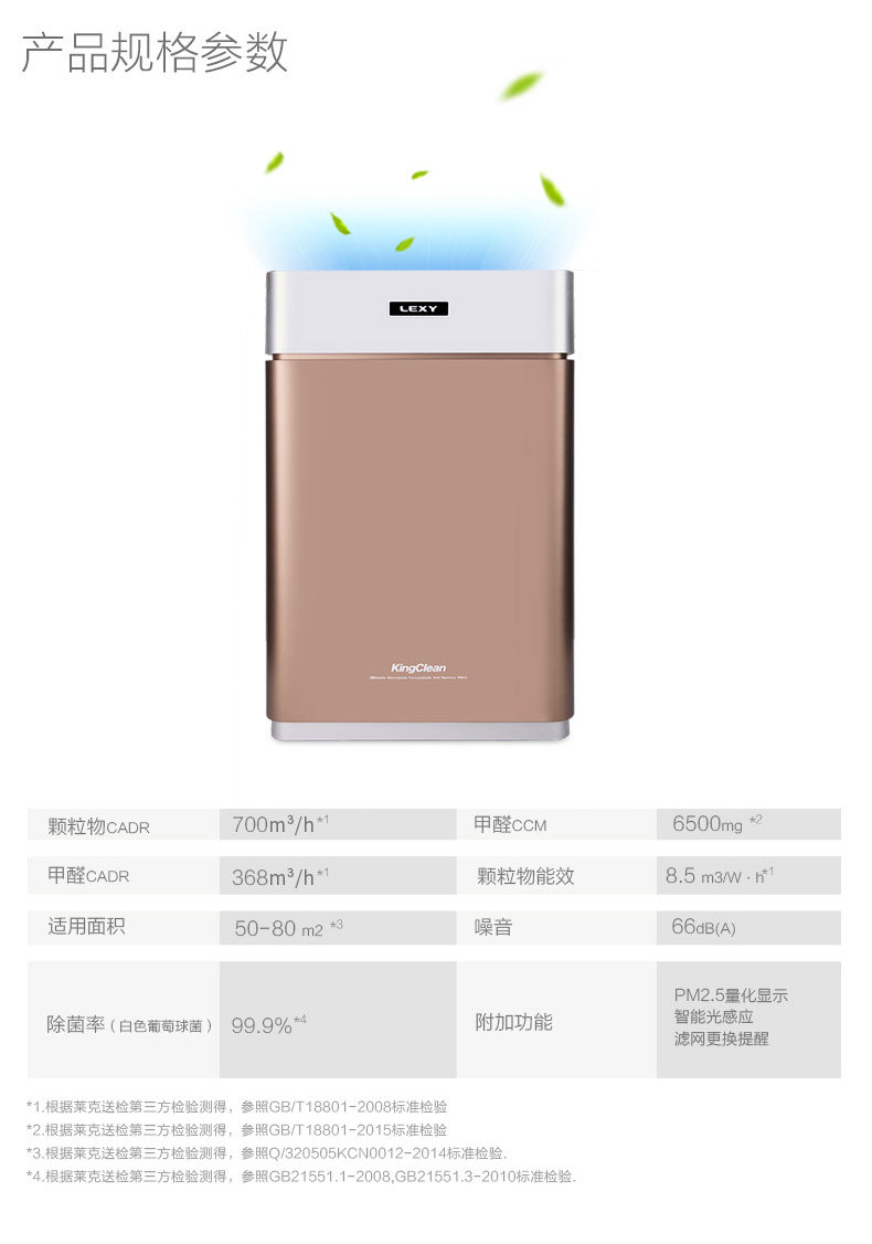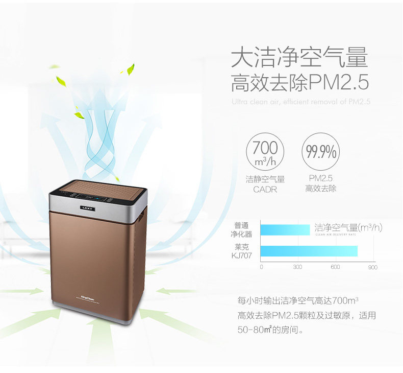 • 空气净化器风量:50 立方米/小时