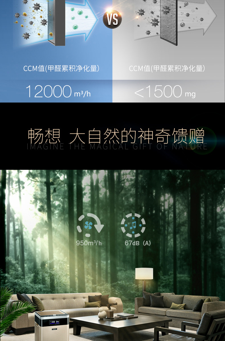 • 甲醛CADR值:600立方米/小时