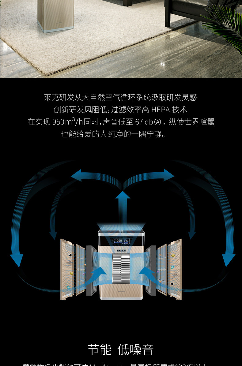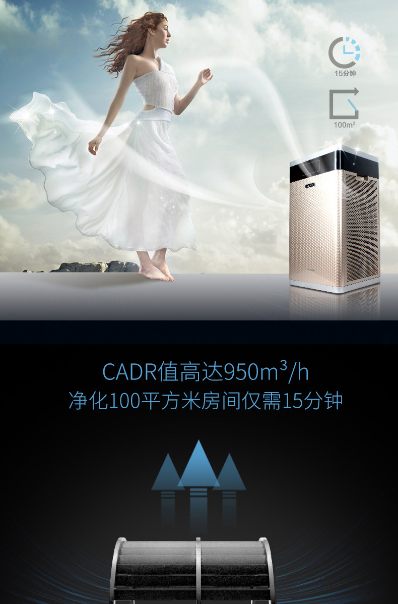 • 颗粒物CADR值:950立方米/小时