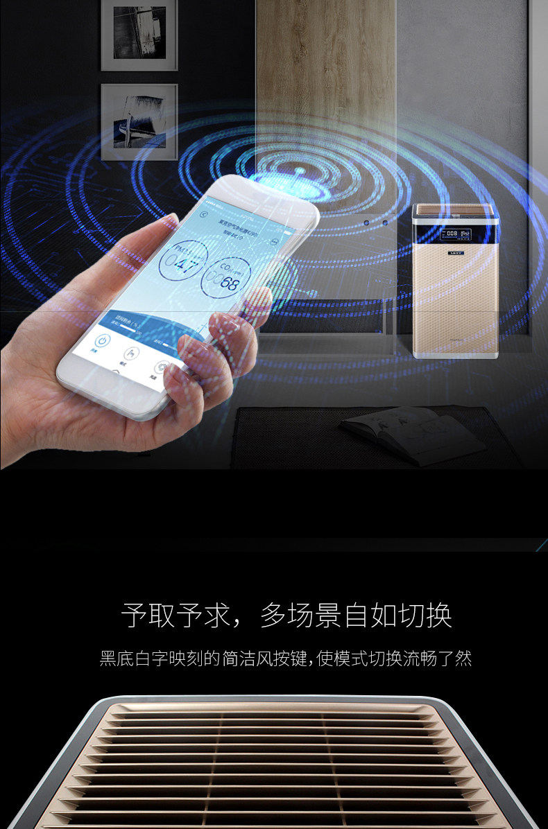 • 功能:定时 除VOC 除花粉 除颗粒物 除甲醛 除烟除尘