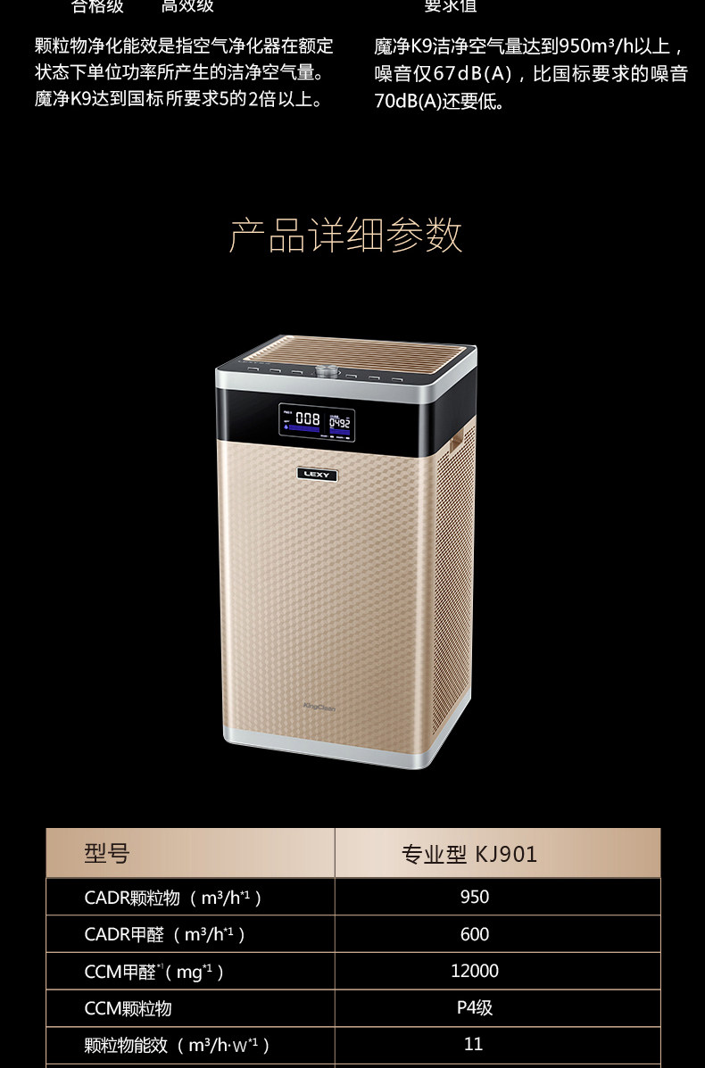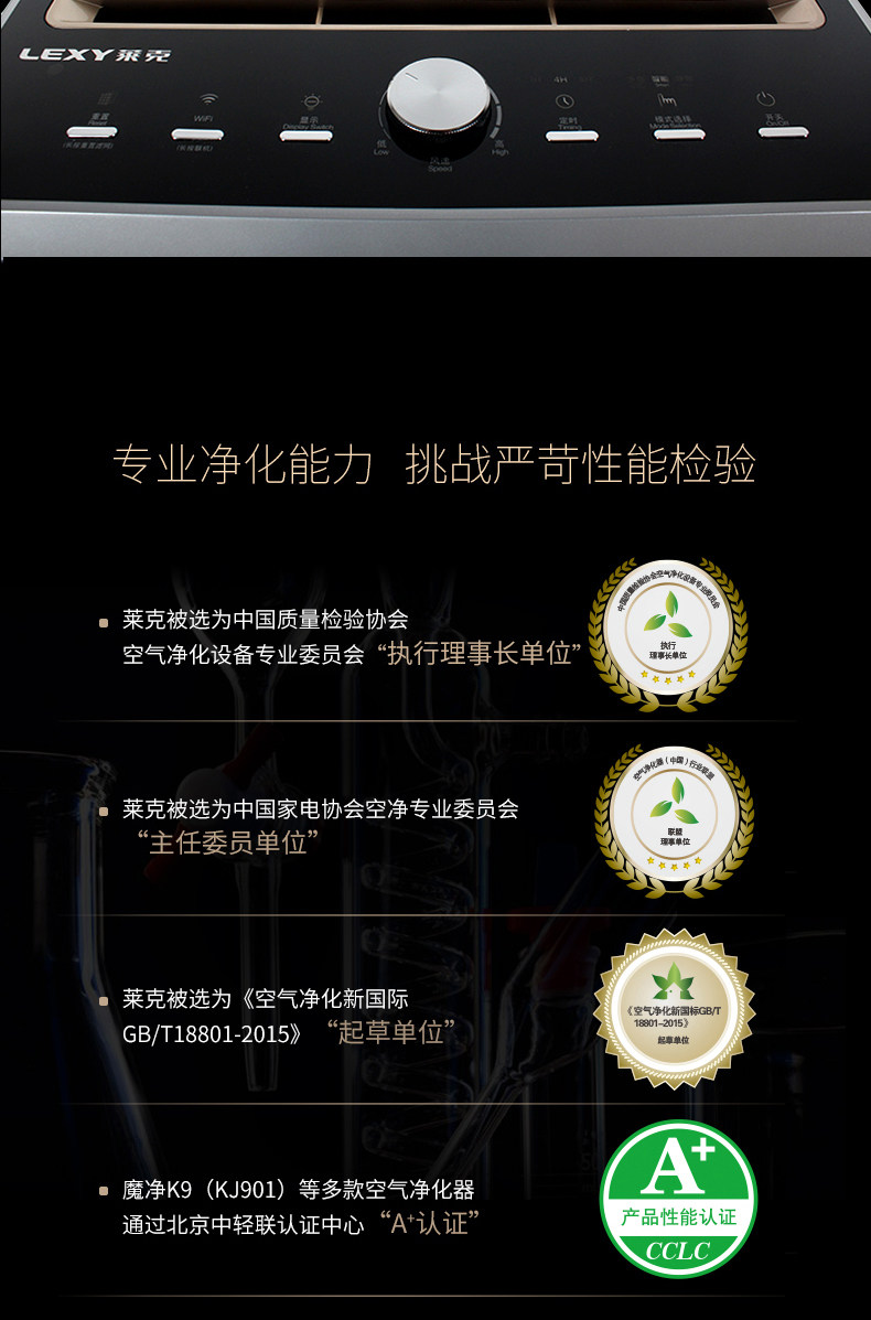 LEXY/莱克魔洁K9 大洁净空气量空气净化器K901快速除霾 长效除醛