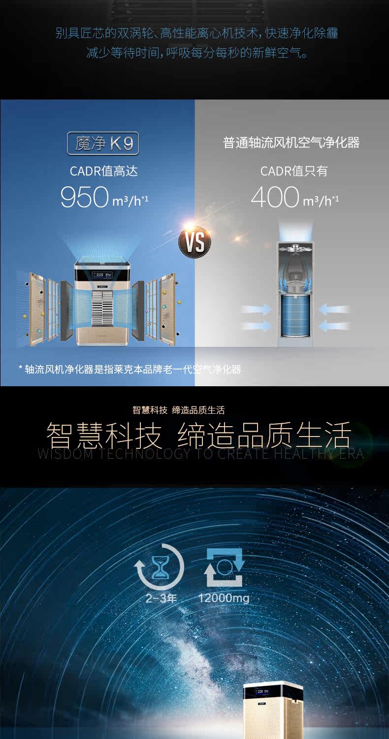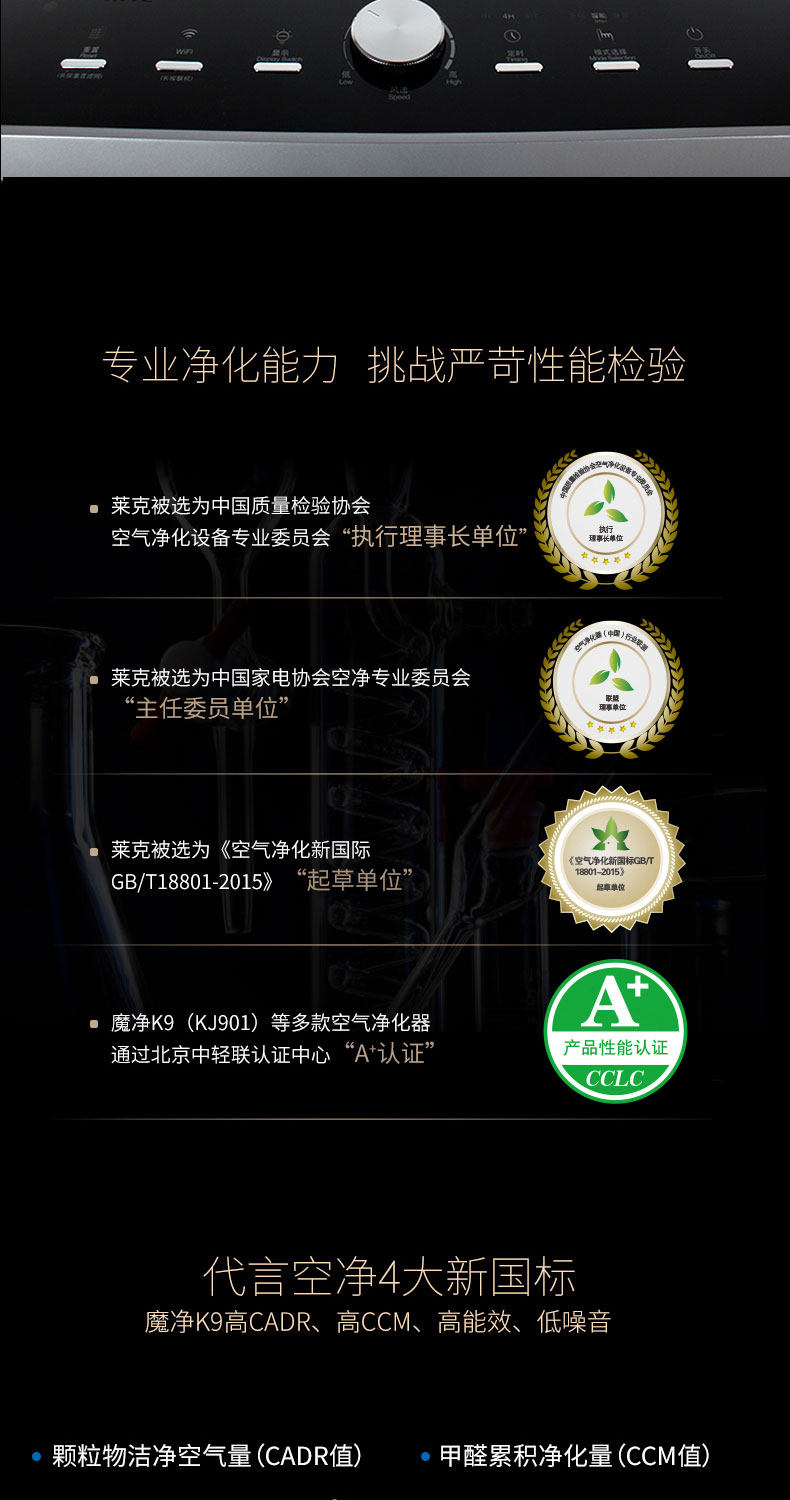 LEXY/莱克 大洁净空气量空气净化器K9 魔净K9 快速除霾 长效除醛