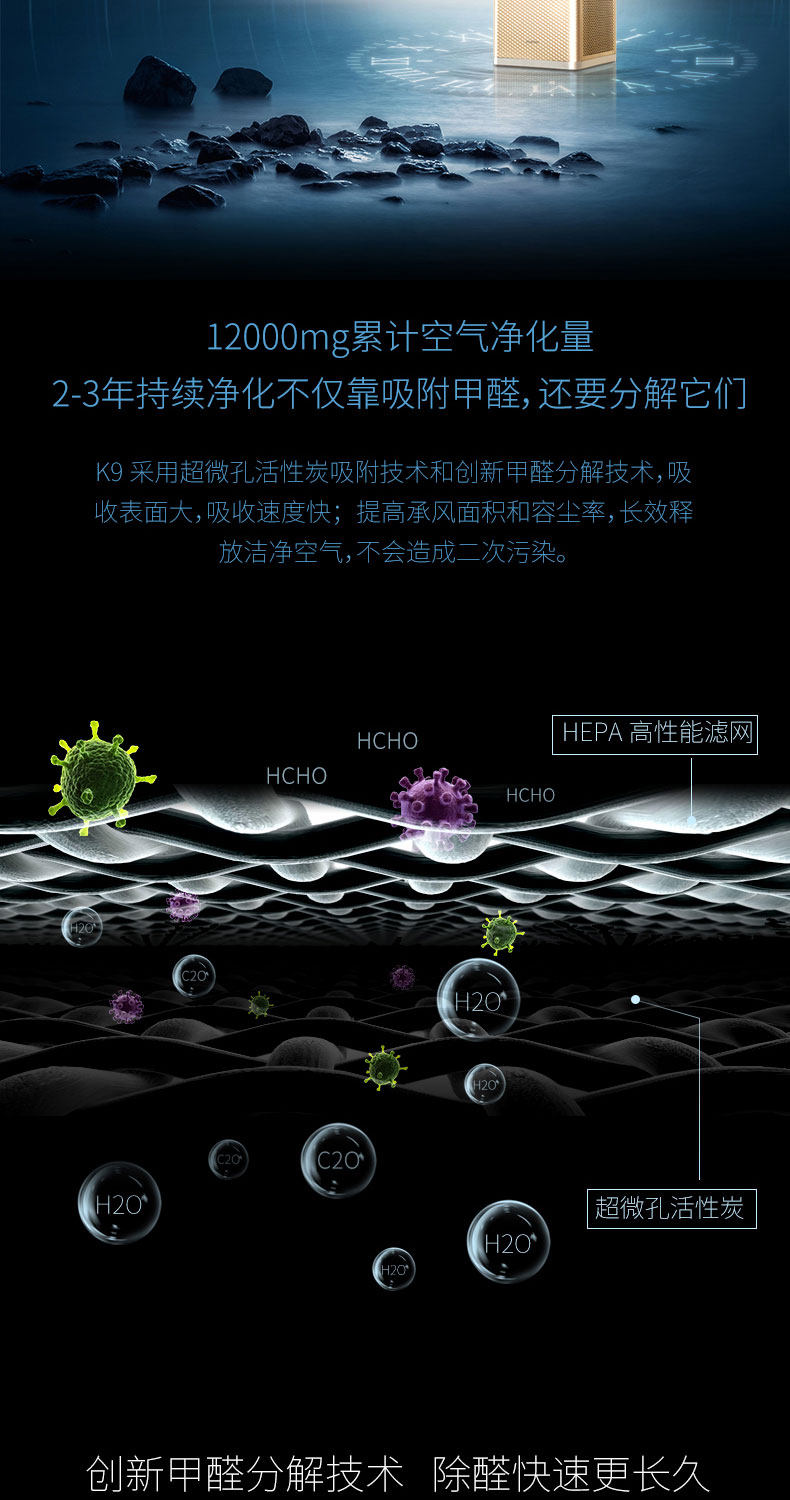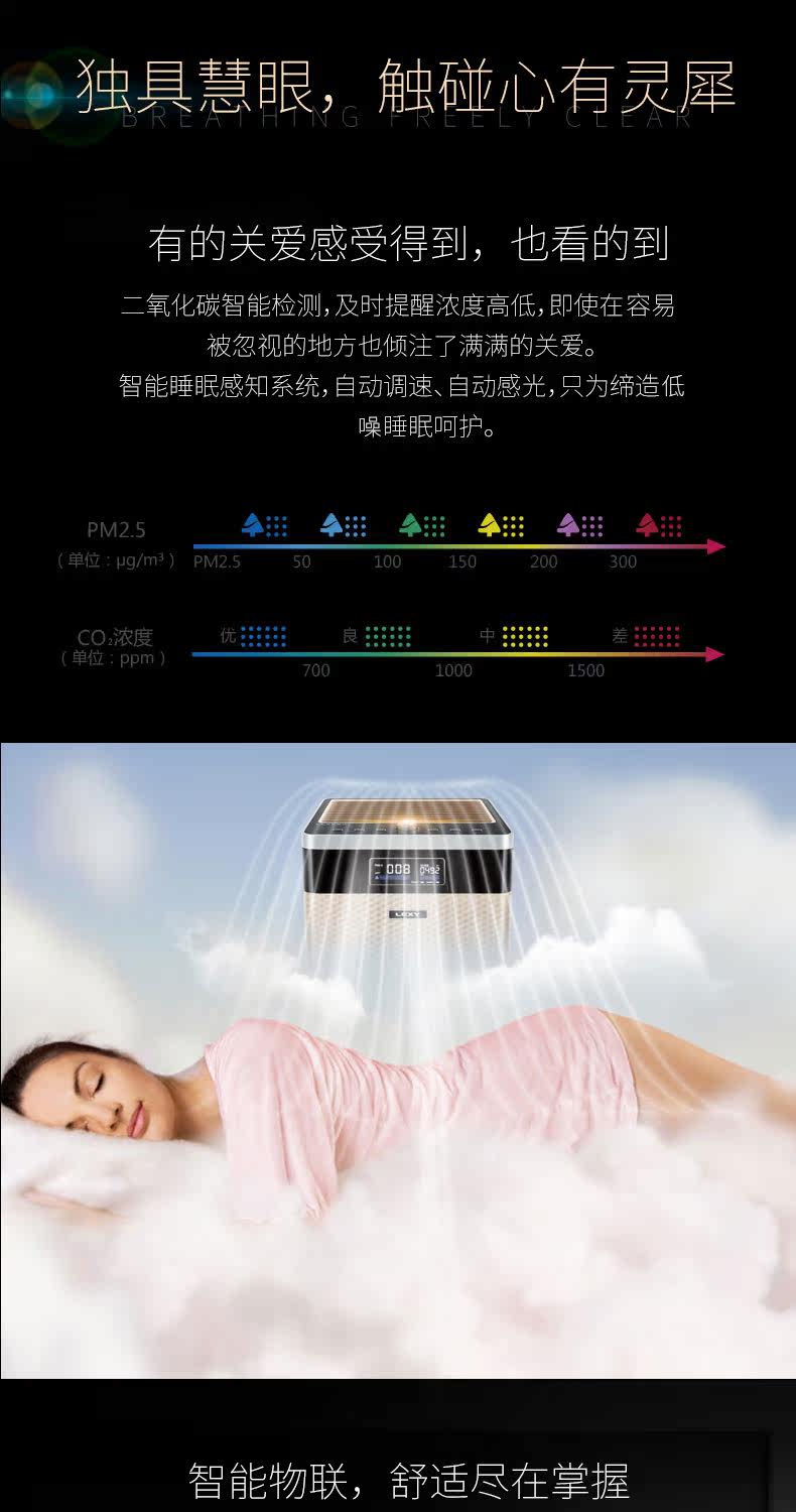 • 功能:定时除VOC除花粉除颗粒物除甲醛除烟除尘