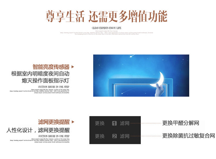 • 功能:定时 除花粉 除甲醛 除烟除尘 杀菌