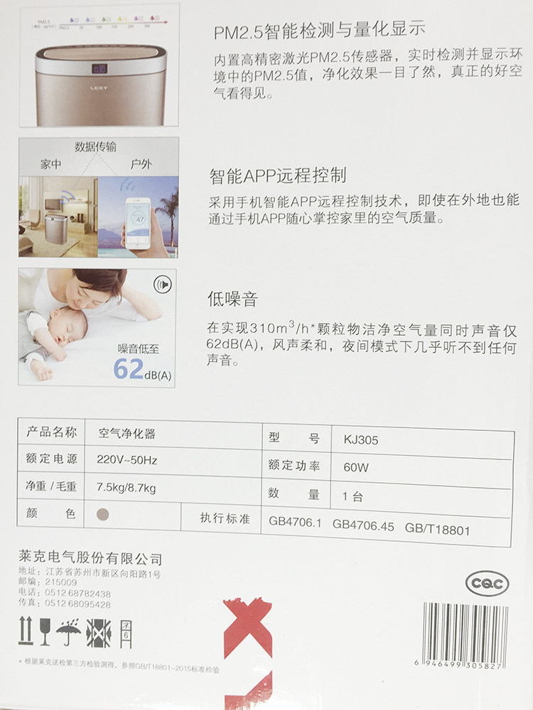 [莱克品牌直销店空气净化,氧吧]莱克空气净化器KJ305 家用高端卧月销量0件仅售2999元