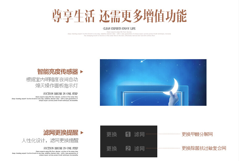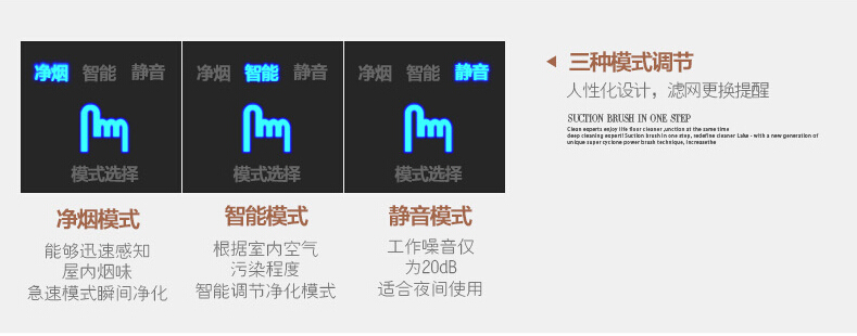 • 功能:定时 除花粉 除甲醛 除烟除尘 杀菌