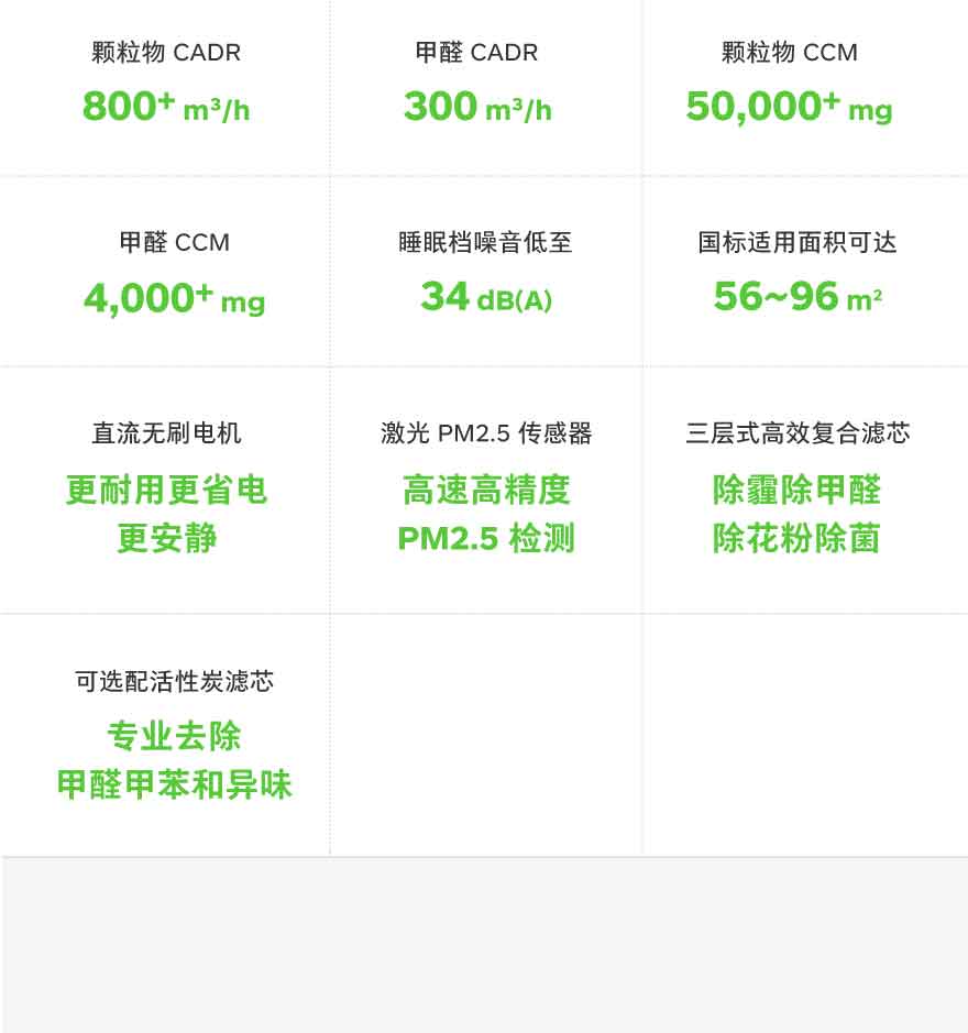 • 功能:定时 除VOC 除花粉 除颗粒物 除甲醛 除烟除尘 杀菌 除雾霾 除菌