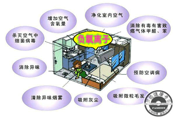 制造活性氧:负氧离子能有效激活空气中的氧分子,使其更加活跃而更易被人体所吸 收,有效预防"空调病"。