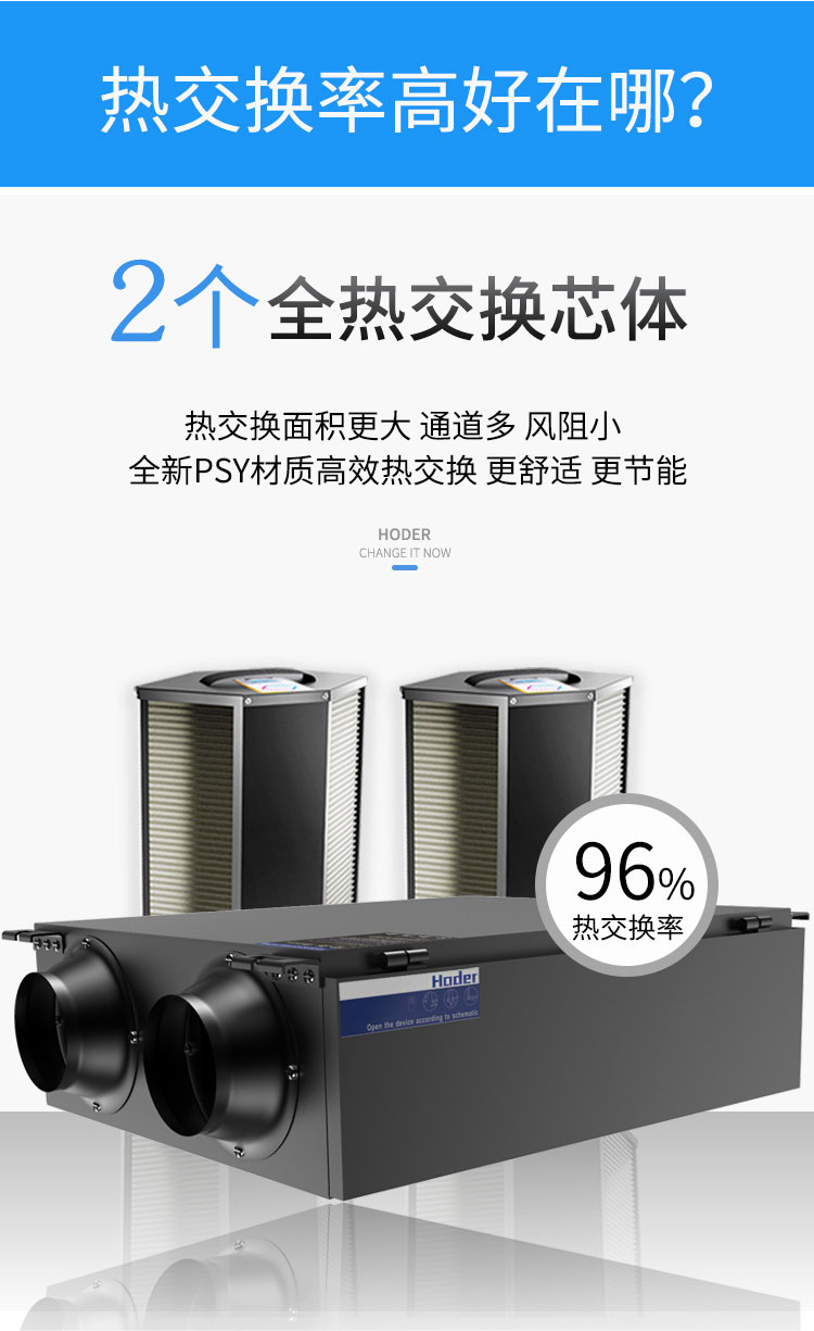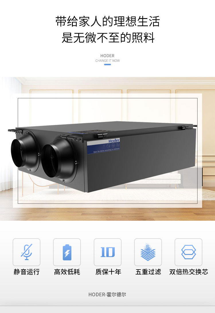 霍尔德尔新风系统家用中央机全热交换器商室内双向流静音空气净化