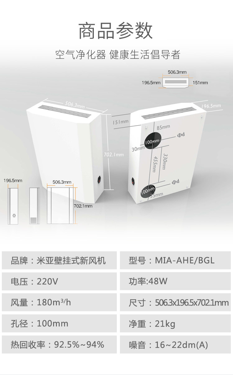米亚壁挂式新风机家用新风系统除甲醛雾霾PM2.5空气净化器换气机