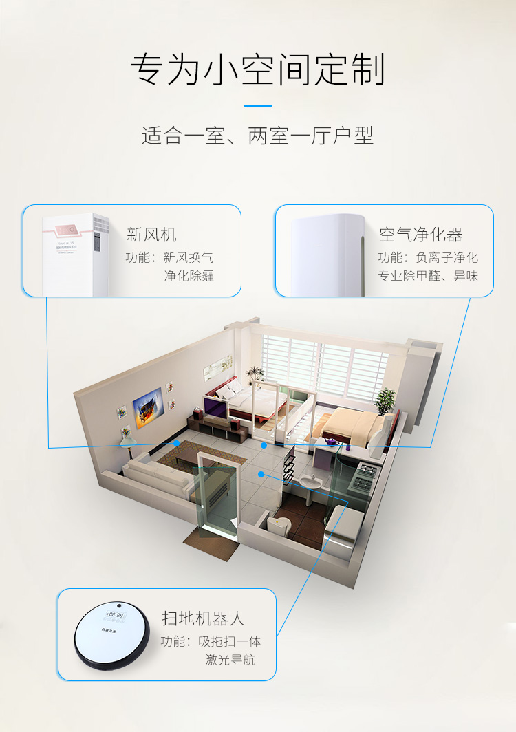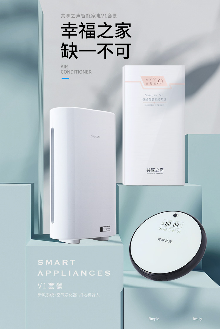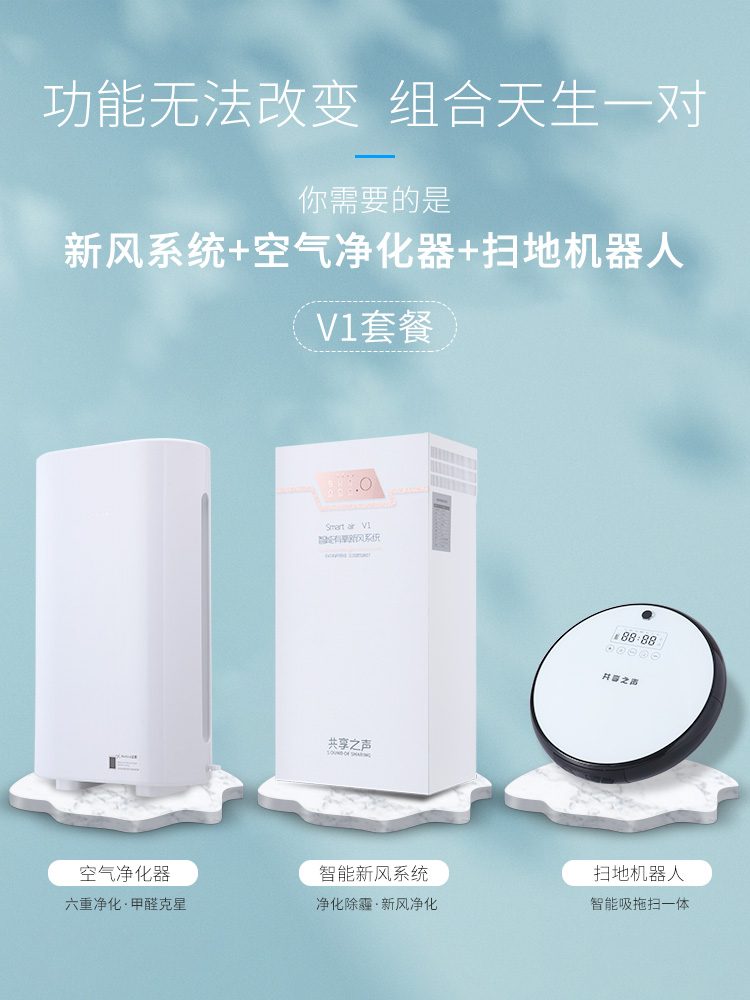 共享之声新风机空气净化器智能扫地机器人套装除甲醛雾霾换气系统