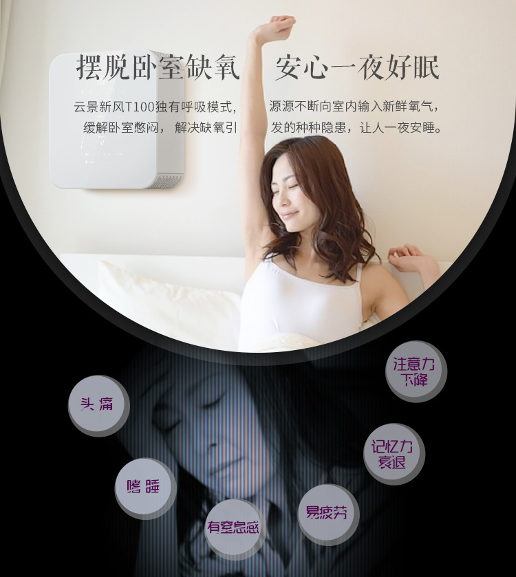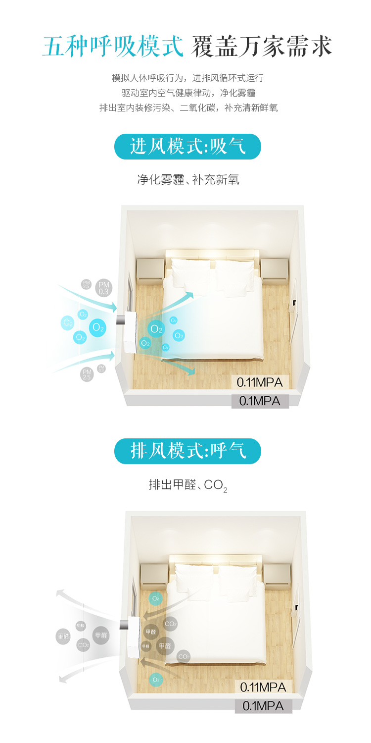 家里每个房间都有净化器 装新风为了降低卧室晚上睡觉时的超标二氧化碳浓度 俩卧室只能安在玻璃上而且必须小巧 同时具备热储能和呼吸功能的 搜了好久市面上貌似只有这款了 用之前浓度最高2000+(健康值1000以下)晚上开一档基本是1000上下 现在早晨起来一点也不觉得闷了 完美解决了我家的问题