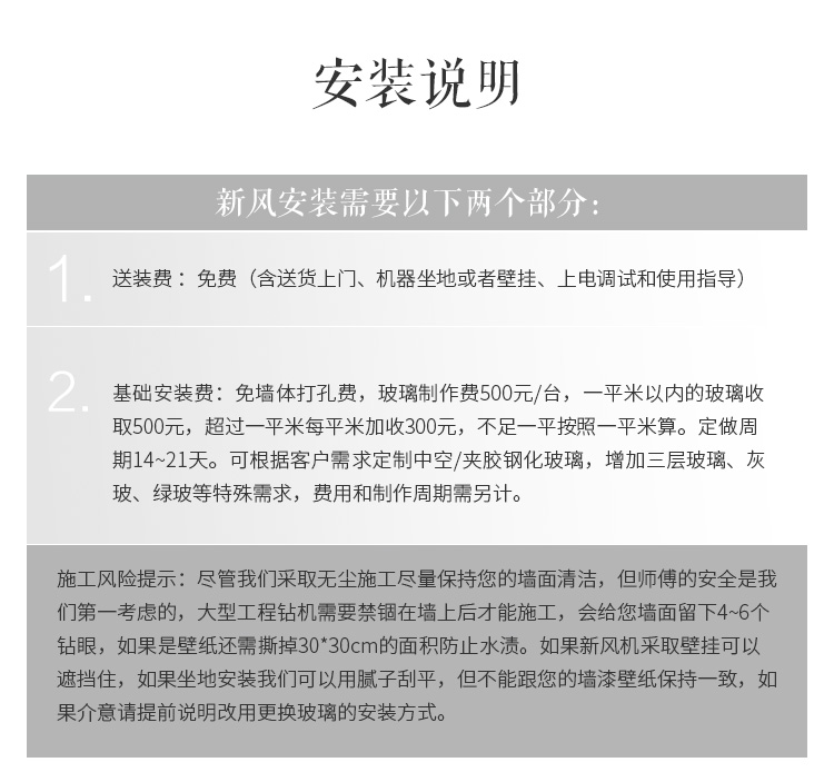 卧室不大,也不想在墙上打孔,看来看去选了这个。厂家帮忙定制了一块开孔的玻璃,很快就安装好了。试用了几天,风量合适,自己买检测仪测试,数据都在10以内,噪音也能接受,购买时客服态度很好,后续勘测服务也很专业。考虑要再来一台。