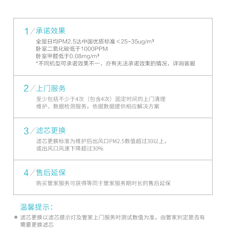 还未正式使用,装好后试用了一下,净化效果不错,PM2.5能直接降到0。