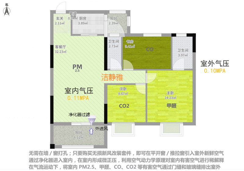 • 甲醛CADR值:450立方米/小时