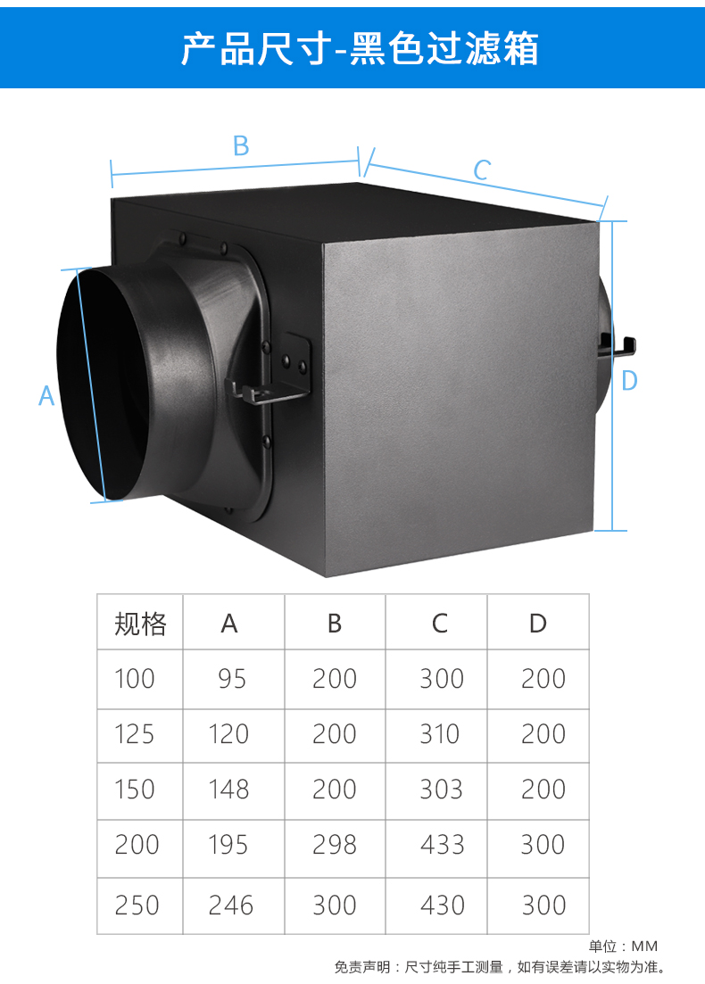 • 颜色分类:黑色净化箱带滤网(Φ100mm) 黑色净化箱带滤网(Φ125mm) 黑色净化箱带滤网(Φ150mm) 黑色净化箱带滤网(Φ200mm) 初效滤网(Φ100~Φ150) 高效滤网(Φ100~Φ150) 活性碳滤网(Φ100~Φ150) 初效滤网(Φ200-250) 高效滤网(Φ200-250) 活性碳滤网(Φ200-250) 黑色净化箱带滤网(Φ250mm)