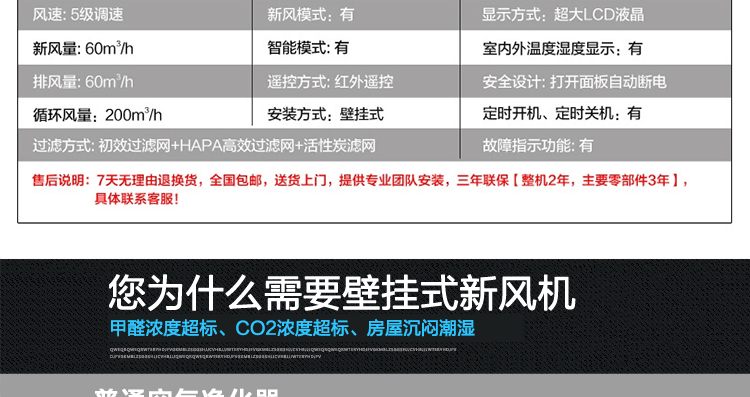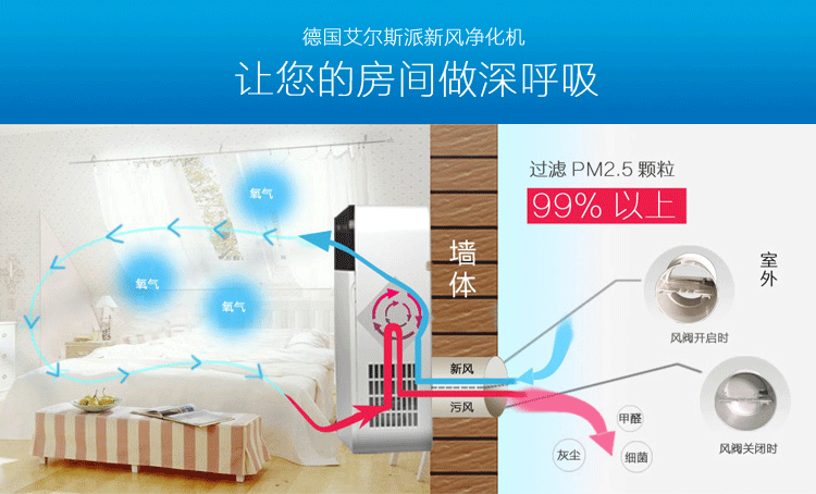 德国艾尔斯派壁挂机新风机,120循环风量. 7天1度电;让室内空气更新鲜,不再怕雾霾;去味随时随地;