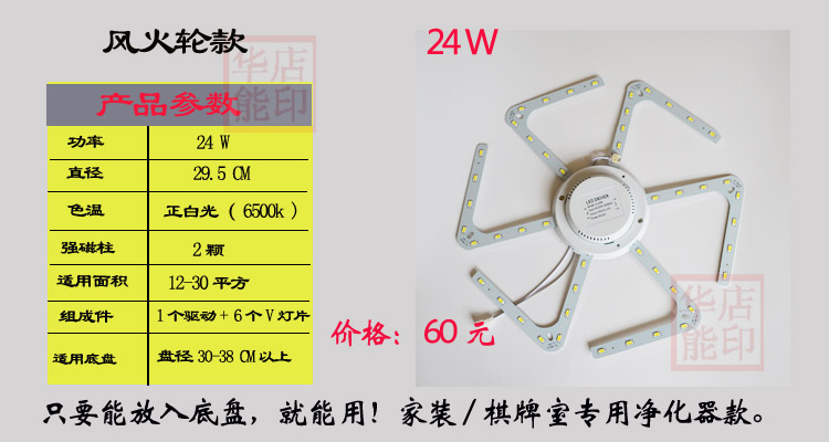 棋牌室空气净化器专用LED灯盘整体: