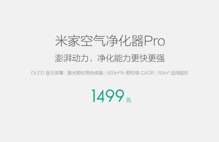 [IUNI艾尤尼品牌手机空气净化器]小米 米家空气净化器pro室内办公家月销量0件仅售1069元