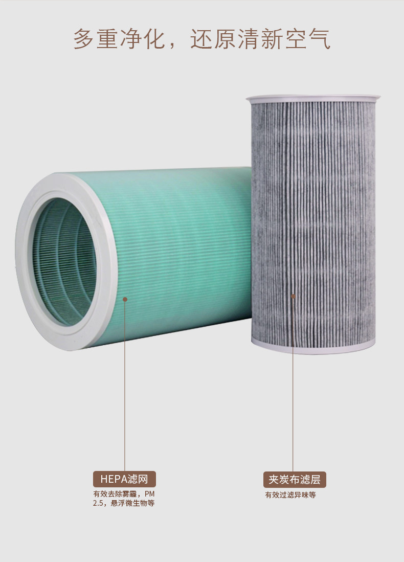 滤芯比原装的要轻,也没有原装的糸,但是装上去效果还可以,净化器也认