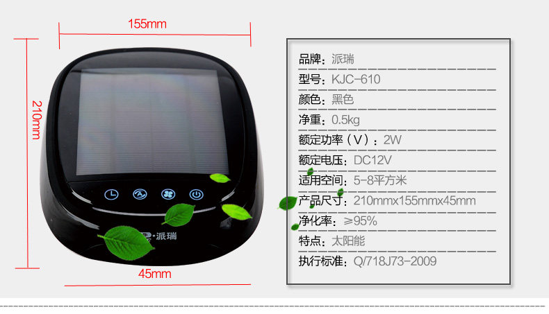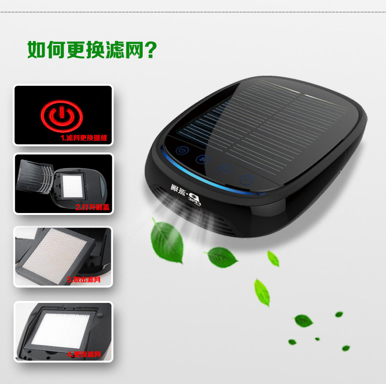 派瑞车载空气净化器汽车用除甲醛除异味太阳能usb负离子净化空器
