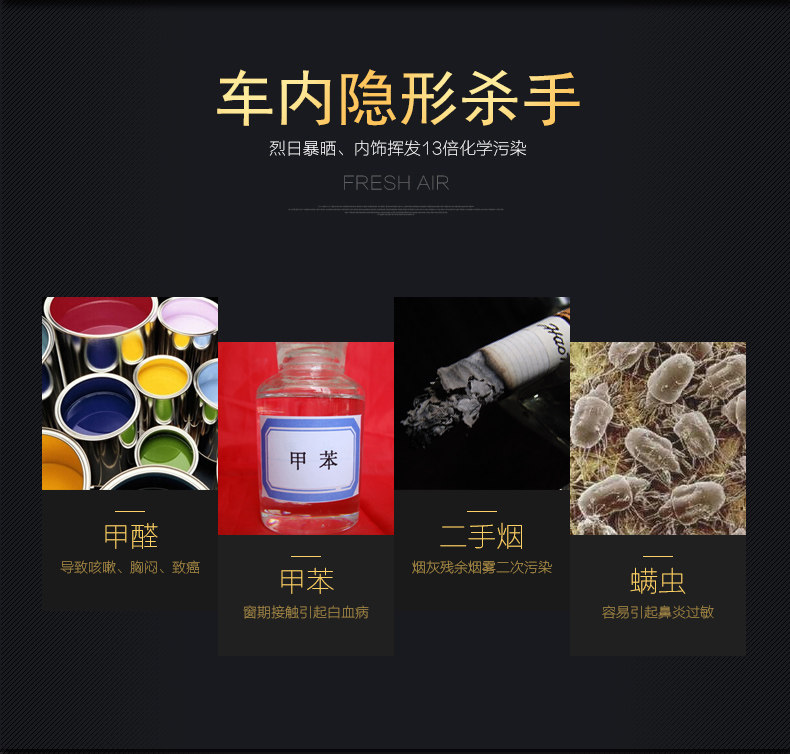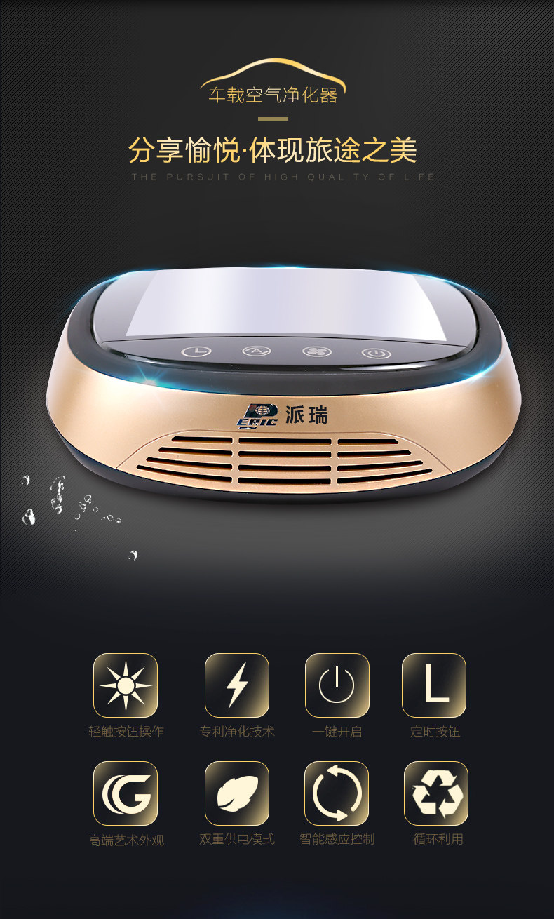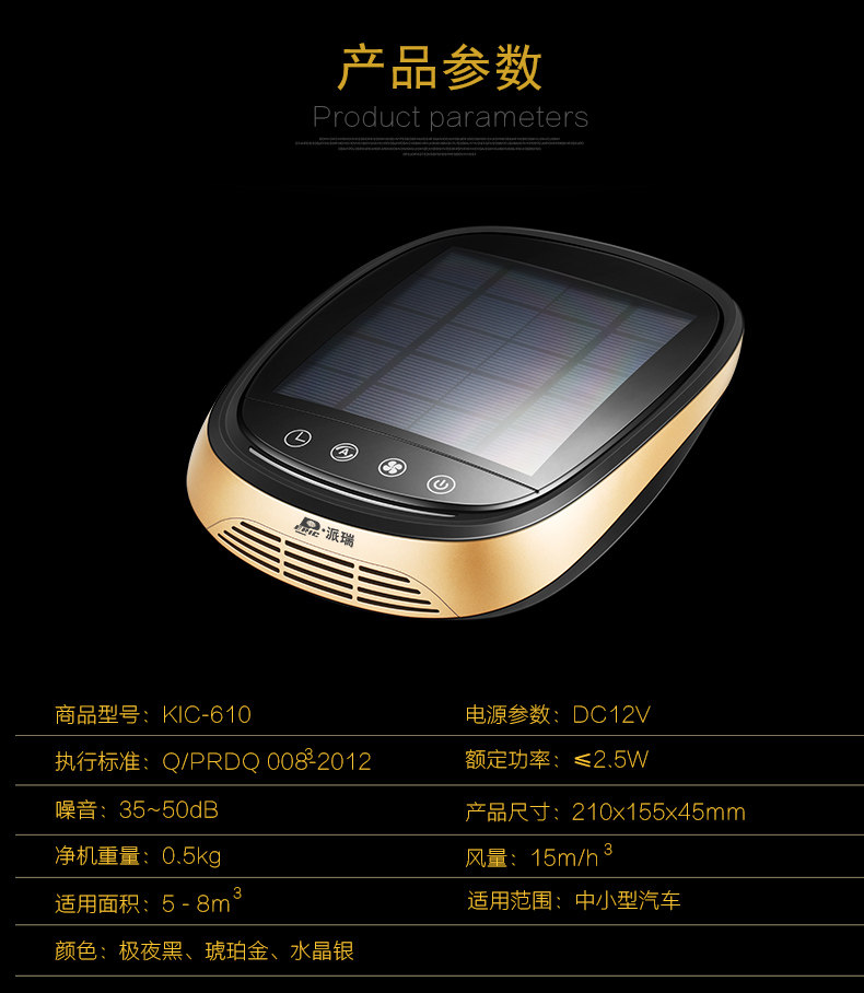 派瑞车载太阳能空气净化器KJC-610负离子除甲醛除苯除异味除尘