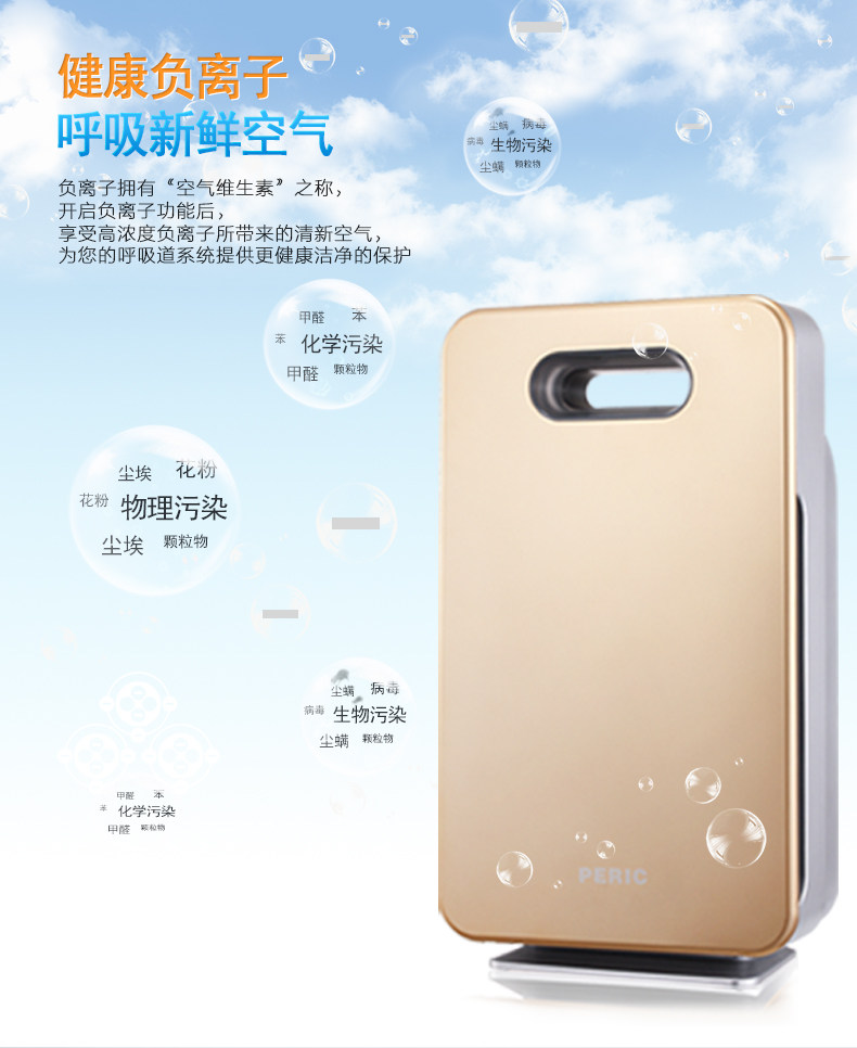 • 功能:缺氧监测 定时 除花粉 除甲醛 除烟除尘 杀菌